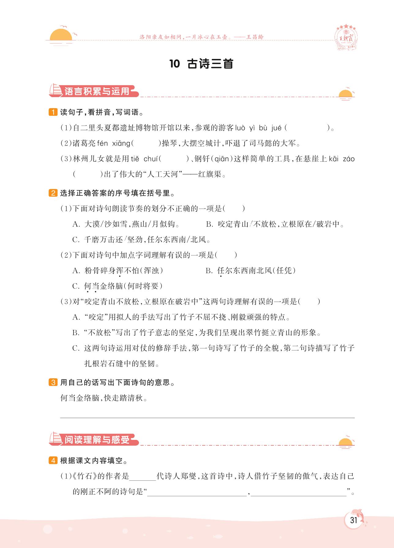 2022下册六年级语文人教版 第四单元 理想和信念——10 古诗三首