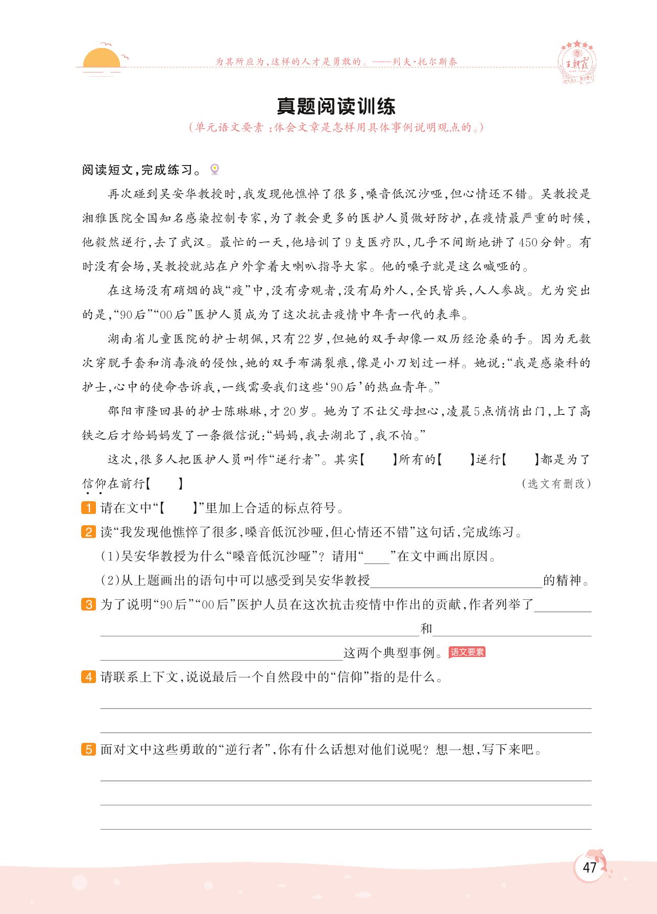 2022下册六年级语文人教版 第五单元 科学精神——真题阅读训练