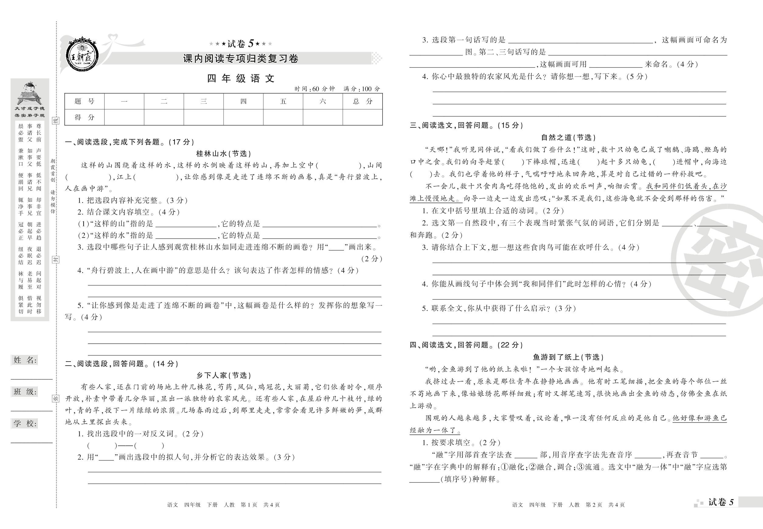 王朝霞期末专项卷——课内阅读专项归类复习卷四年级下册语文(人教版)_R210801231446【5】