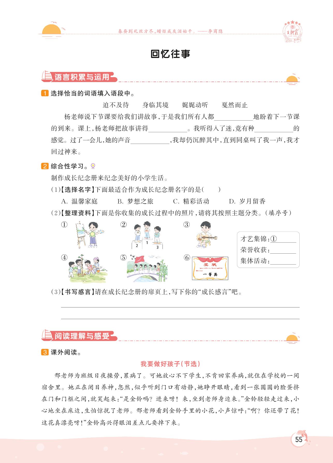 2022下册六年级语文人教版 第六单元 难忘小学生活——回忆往事
