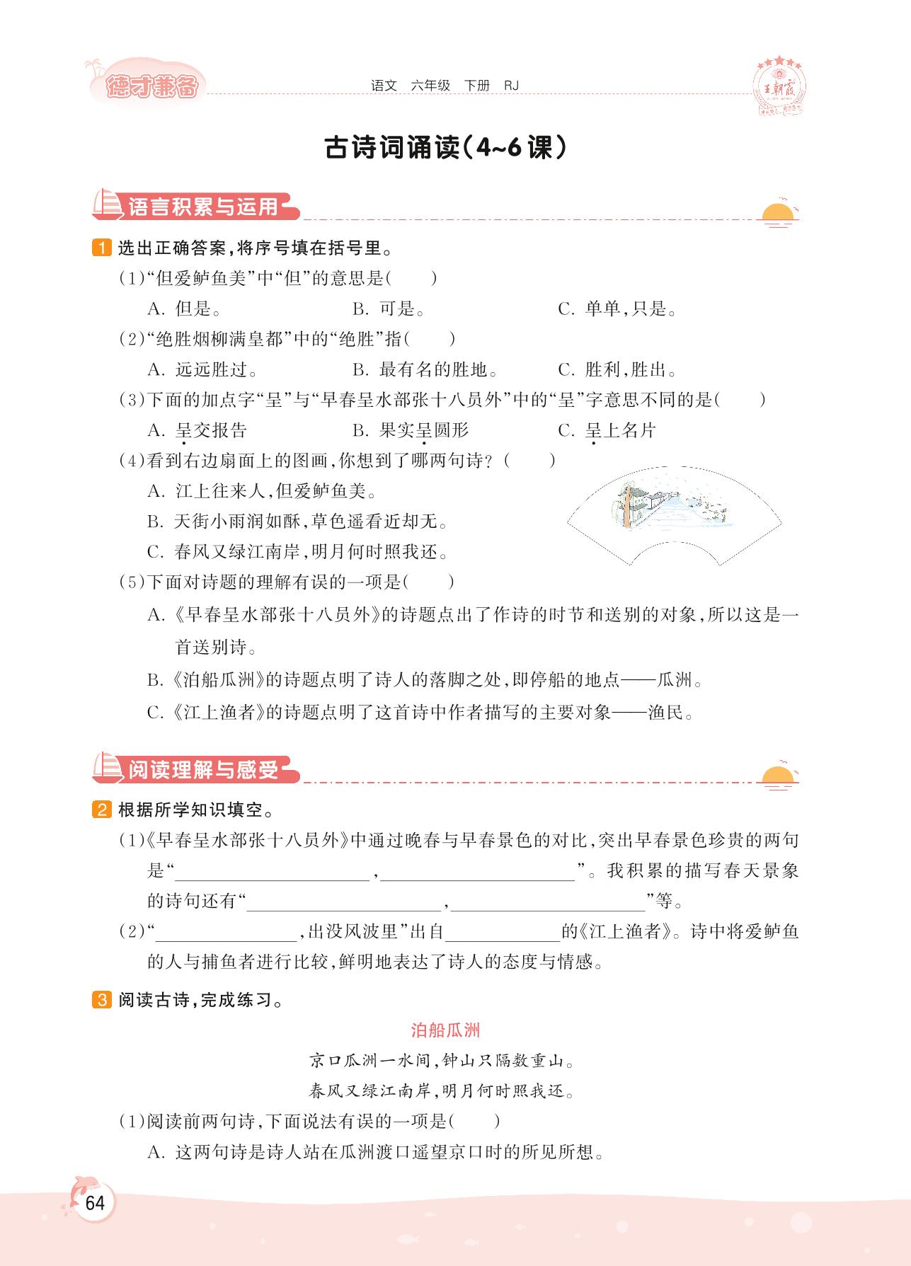 2022下册六年级语文人教版 古诗词诵读——古诗词诵读(4~6课)