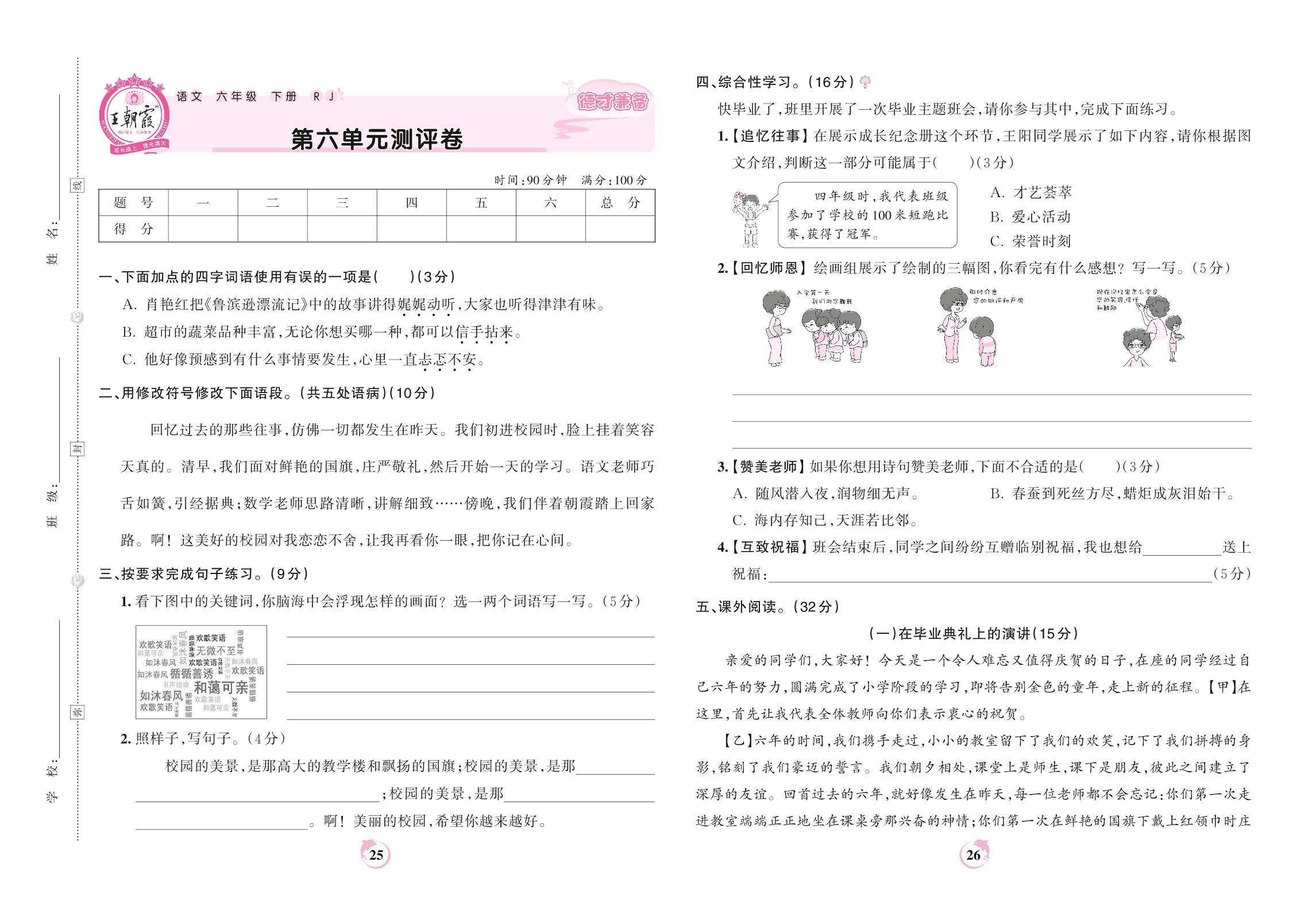 六年级语文人教版下册单元卷