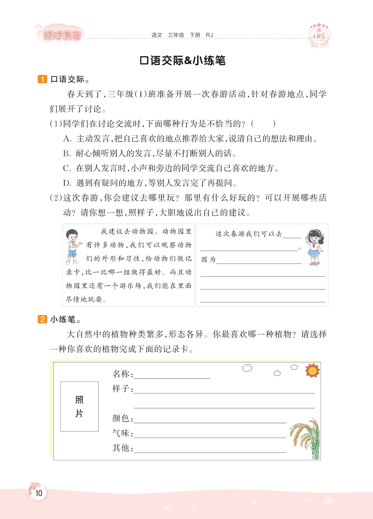 2022下册三年级语文人教版 第一单元 可爱的生灵——口语交际&小练笔