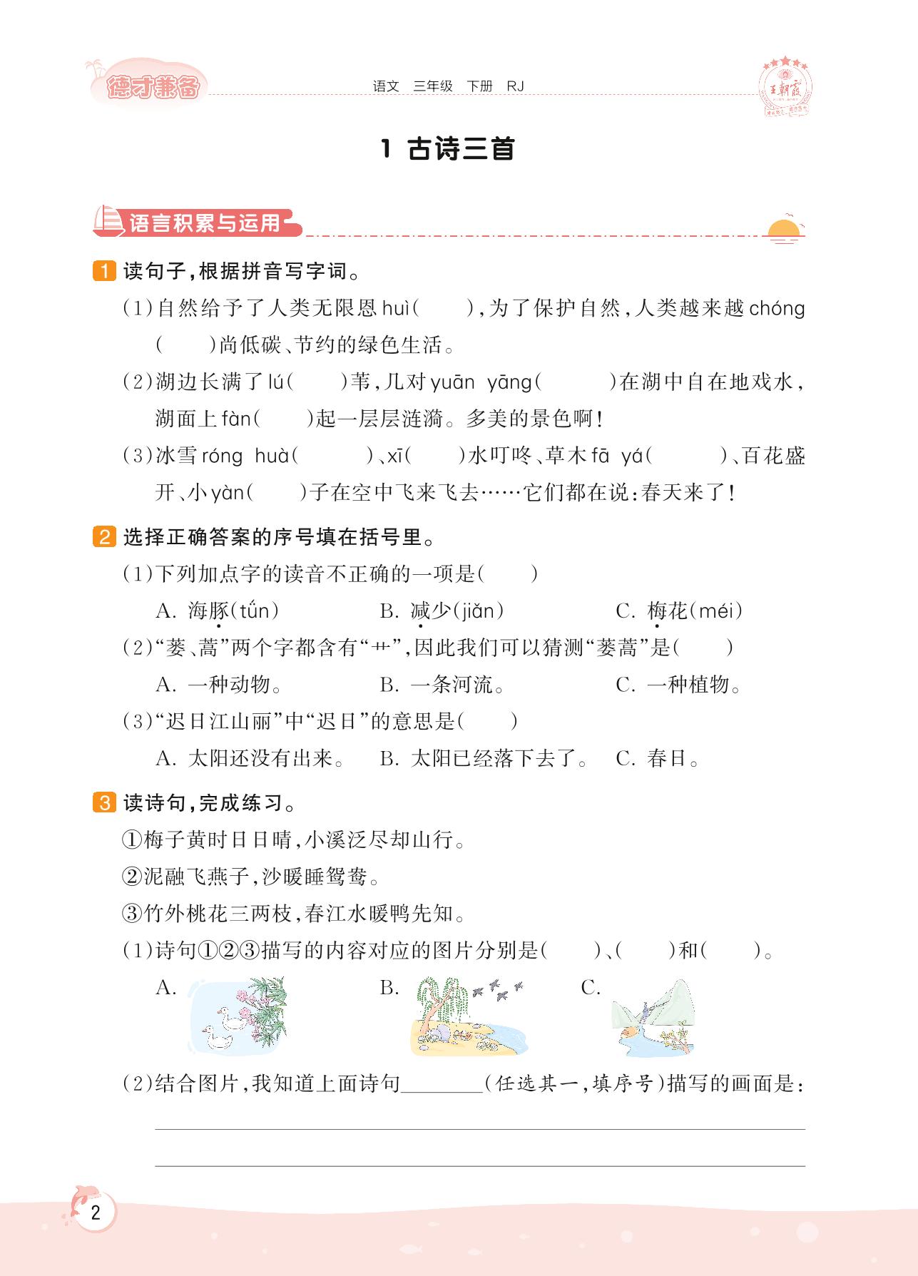 2022下册三年级语文人教版 第一单元 可爱的生灵——1 古诗三首