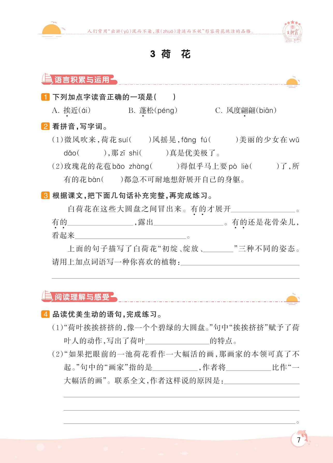 2022下册三年级语文人教版 第一单元 可爱的生灵——3 荷花