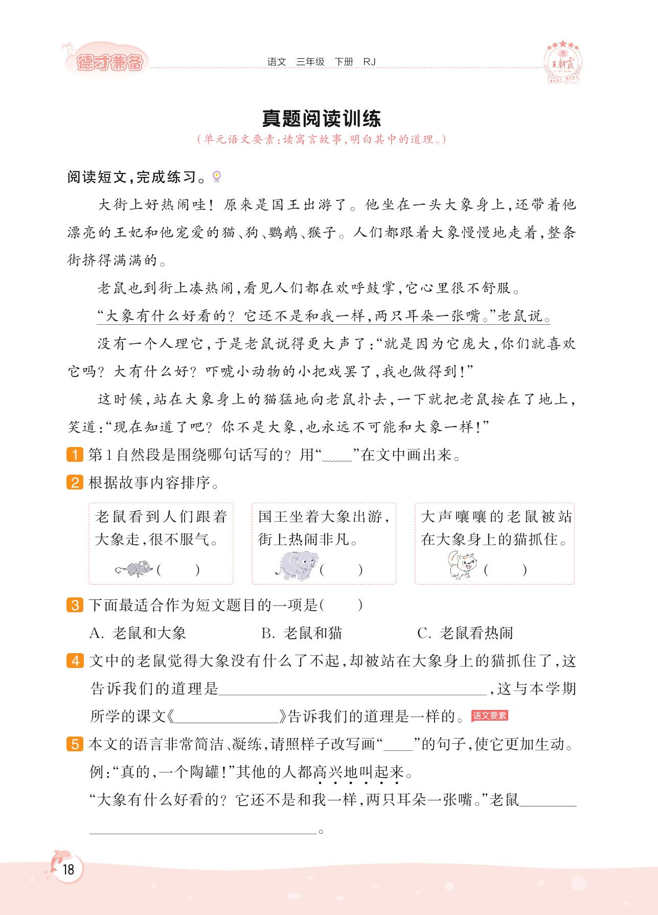 2022下册三年级语文人教版 第二单元 寓言故事——真题阅读训练