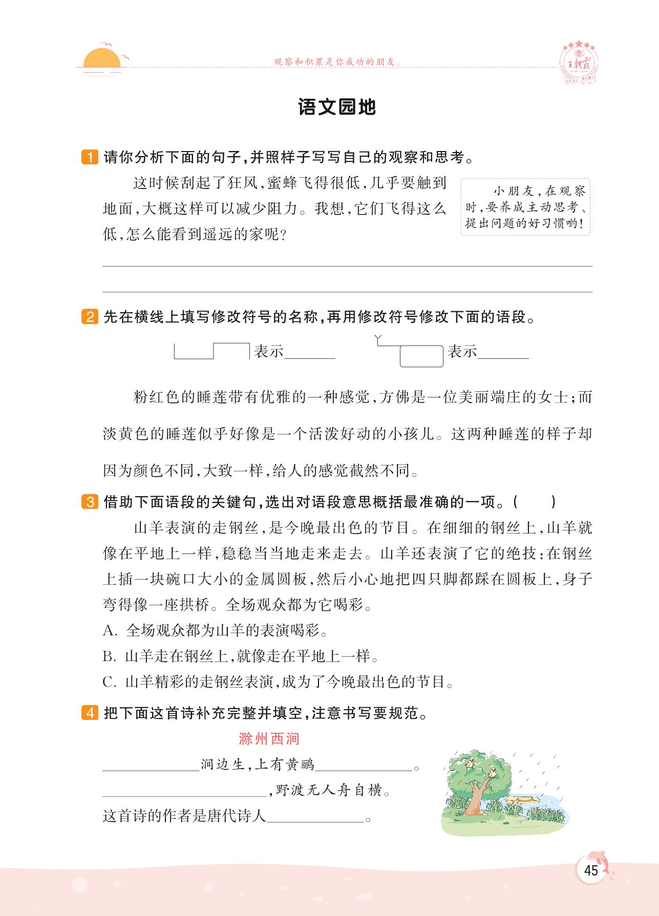 2022下册三年级语文人教版 第四单元 观察与发现——语文园地