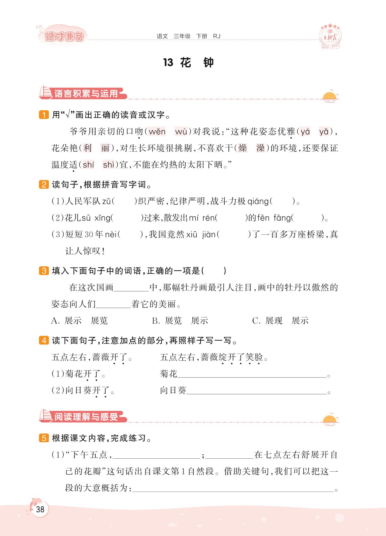 2022下册三年级语文人教版 第四单元 观察与发现——13 花钟