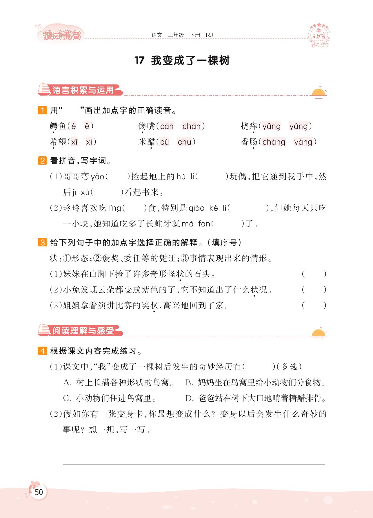 2022下册三年级语文人教版 第五单元 大胆想象——17 我变成了一棵树