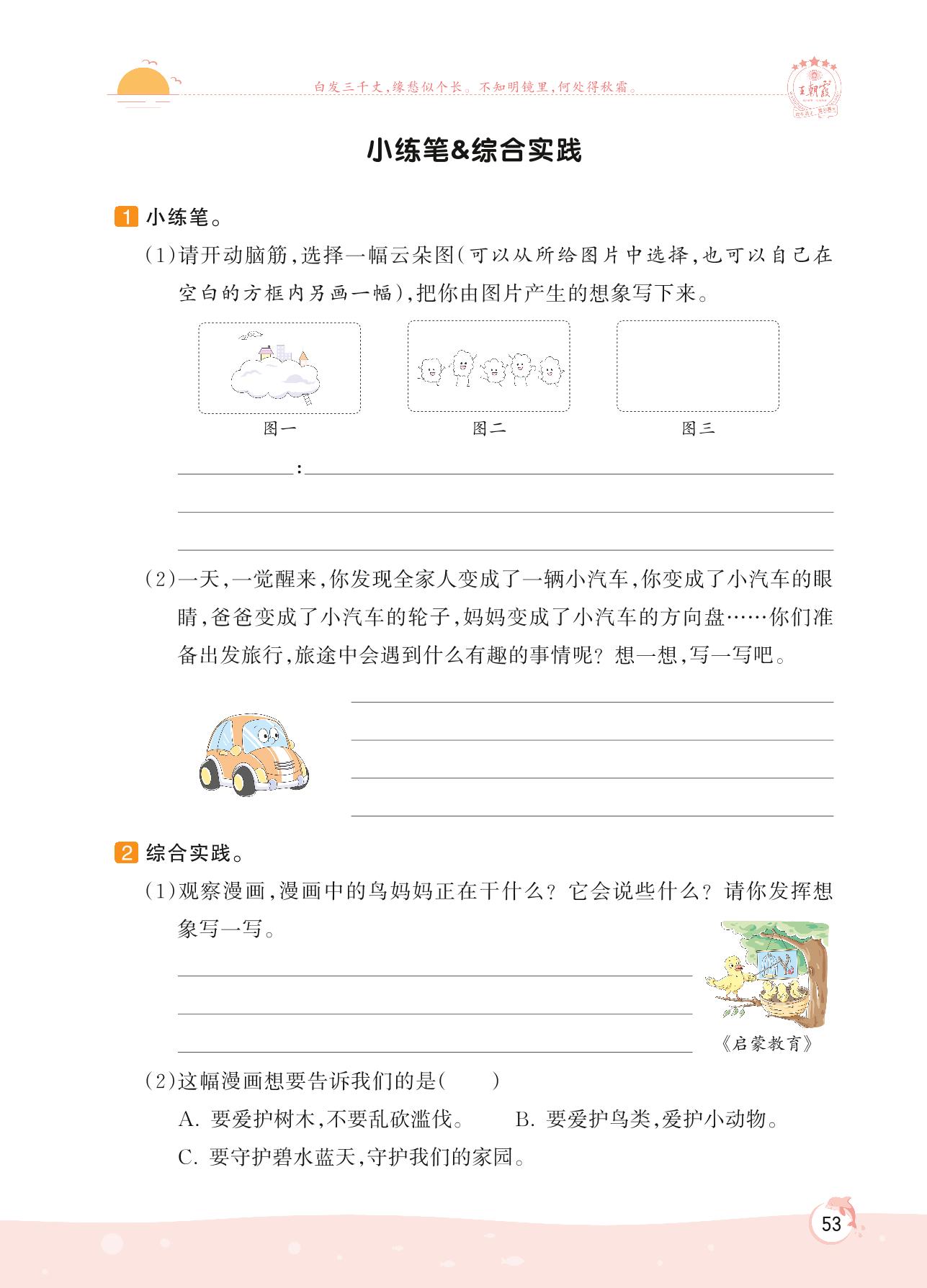 2022下册三年级语文人教版 第五单元 大胆想象——小练笔&综合实践
