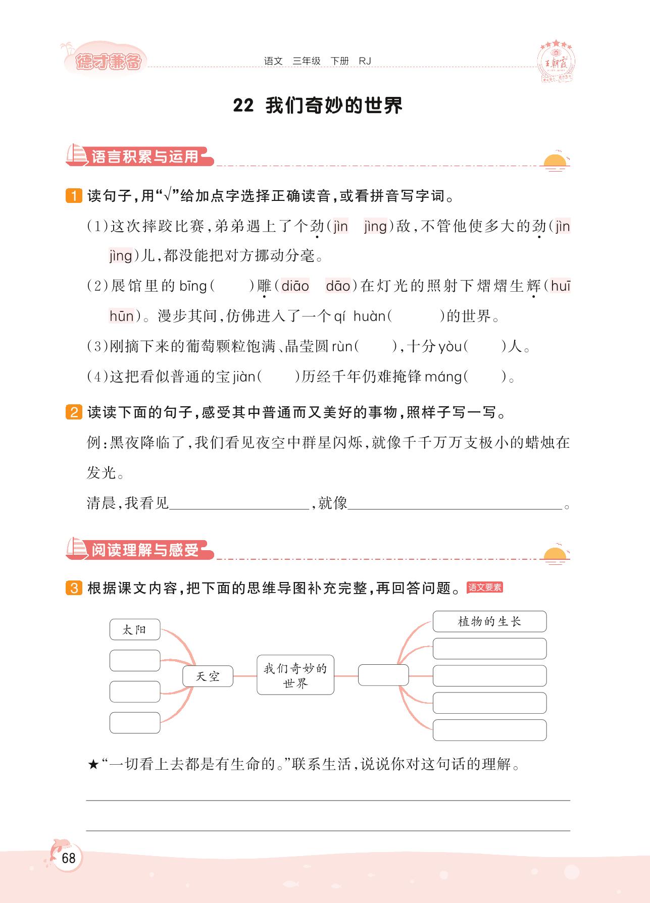 2022下册三年级语文人教版 第七单元 奇妙的世界——22 我们奇妙的世界
