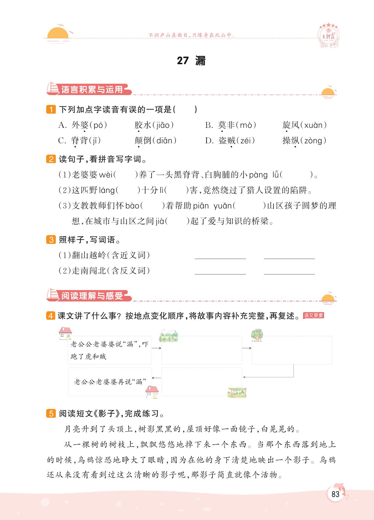 2022下册三年级语文人教版 第八单元 有趣的故事——27 漏