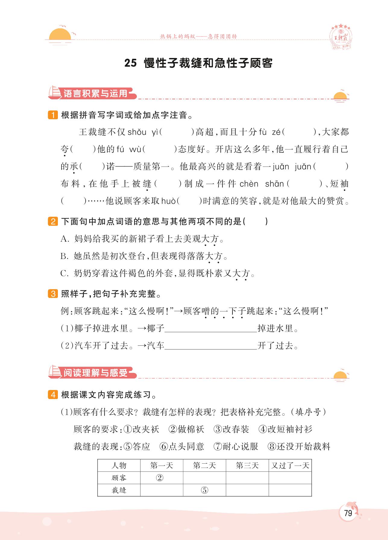 2022下册三年级语文人教版 第八单元 有趣的故事——25 慢性子裁缝和急性子顾客