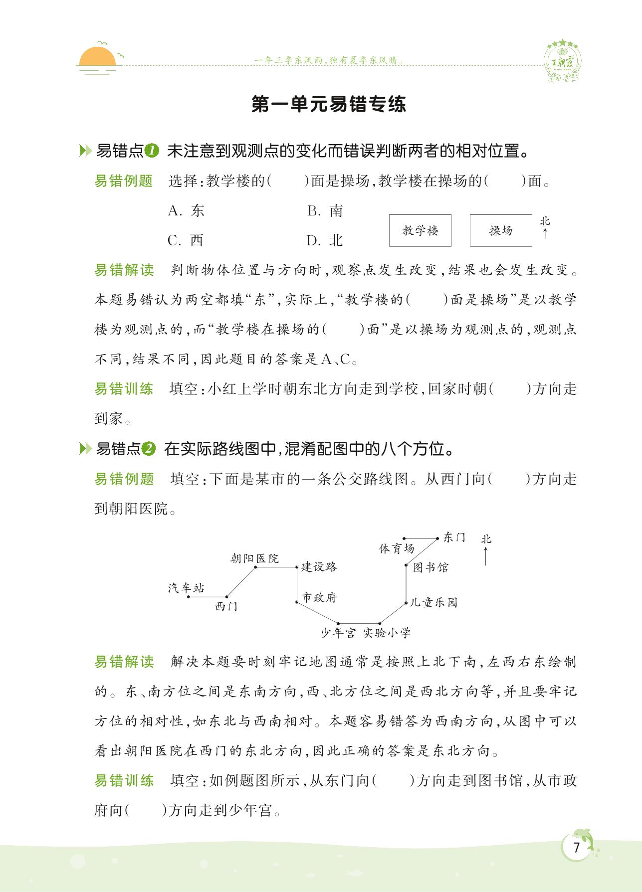 2022下册三年级数学人教版 第一单元 位置与方向(一)——第一单元易错专练