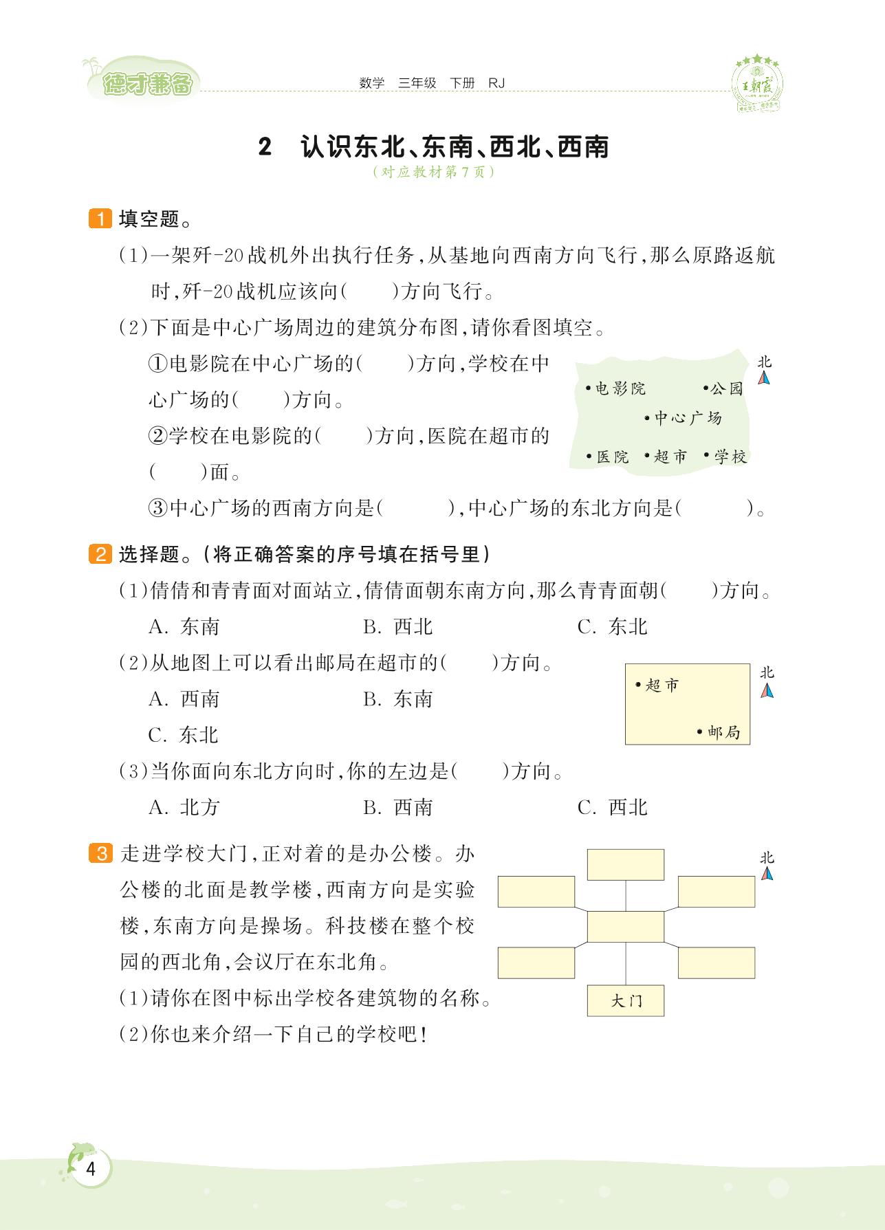2022下册三年级数学人教版 第一单元 位置与方向(一)——2 认识东北、东南、西北、西南