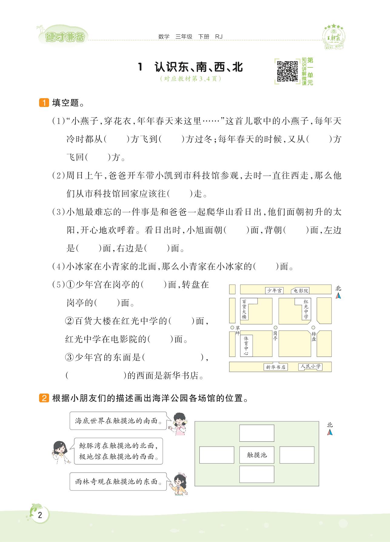 2022下册三年级数学人教版 第一单元 位置与方向(一)——1 认识东、南、西、北