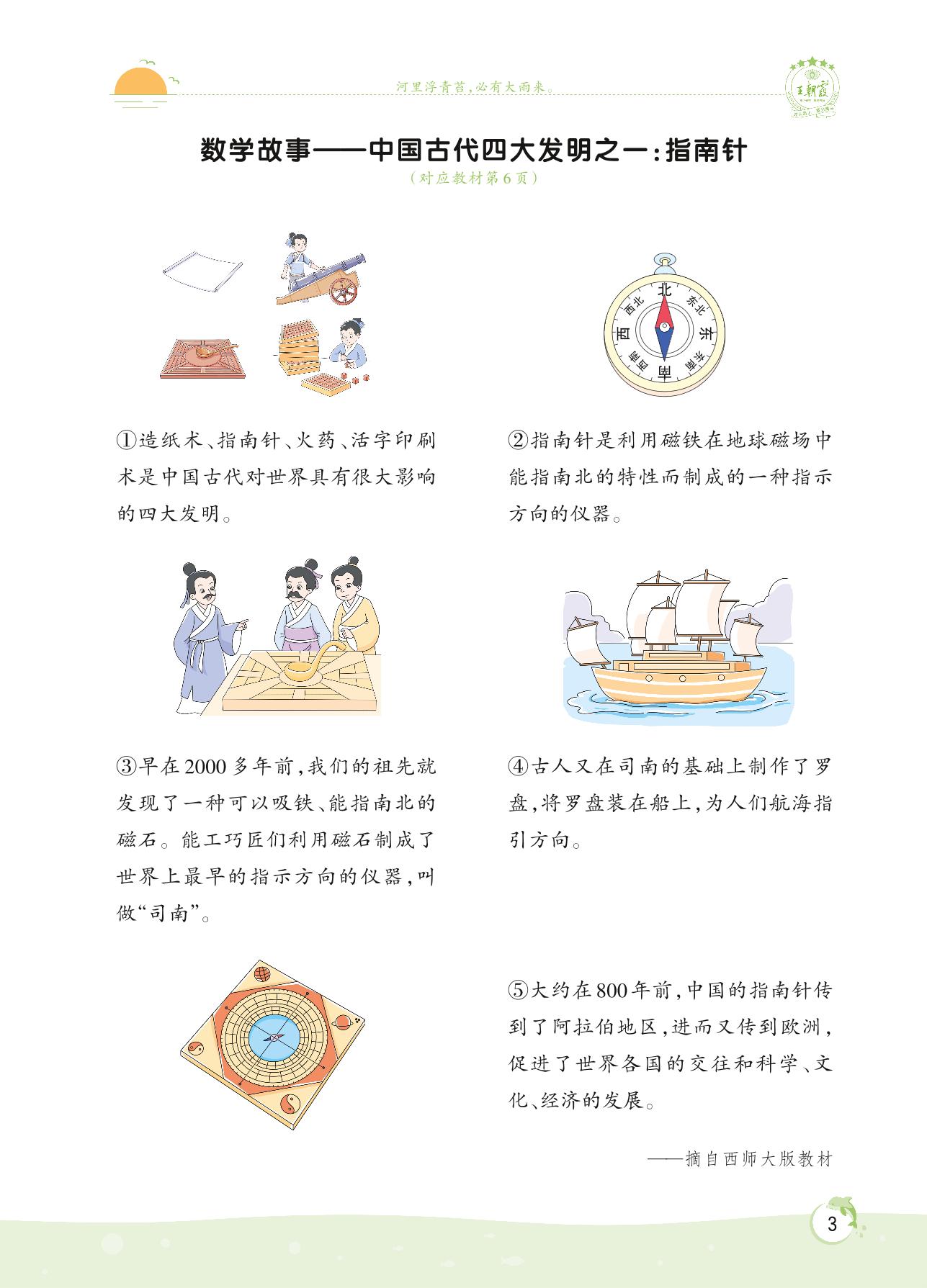2022下册三年级数学人教版 第一单元 位置与方向(一)——数学故事 中国古代四大发明之一:指南针