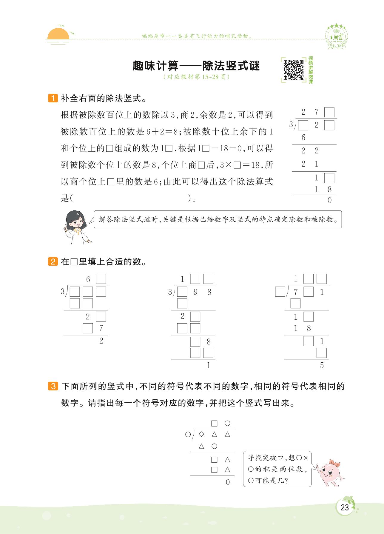 2022下册三年级数学人教版 第二单元 除数是一位数的除法——趣味计算 除法竖式谜