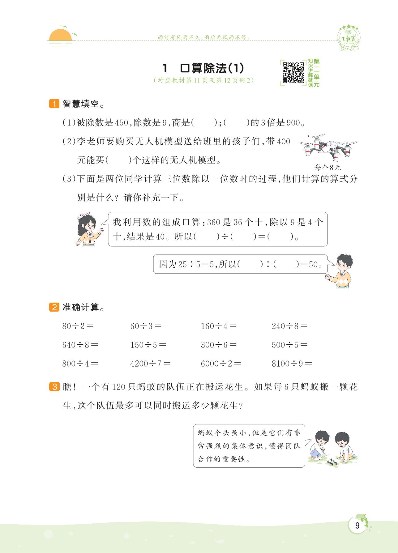 2022下册三年级数学人教版 第二单元 除数是一位数的除法——1 口算除法(1)