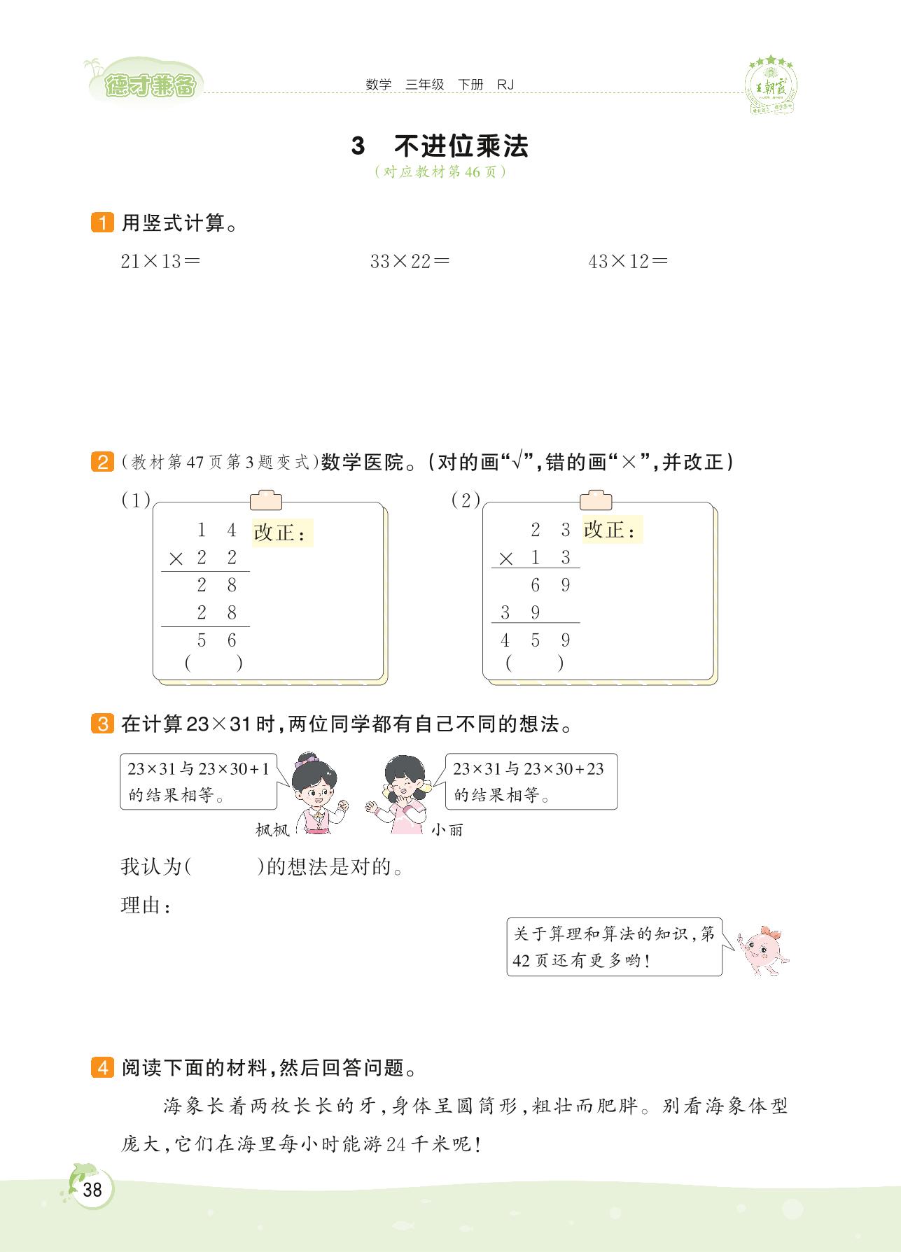 2022下册三年级数学人教版 第四单元 两位数乘两位数——3 不进位乘法