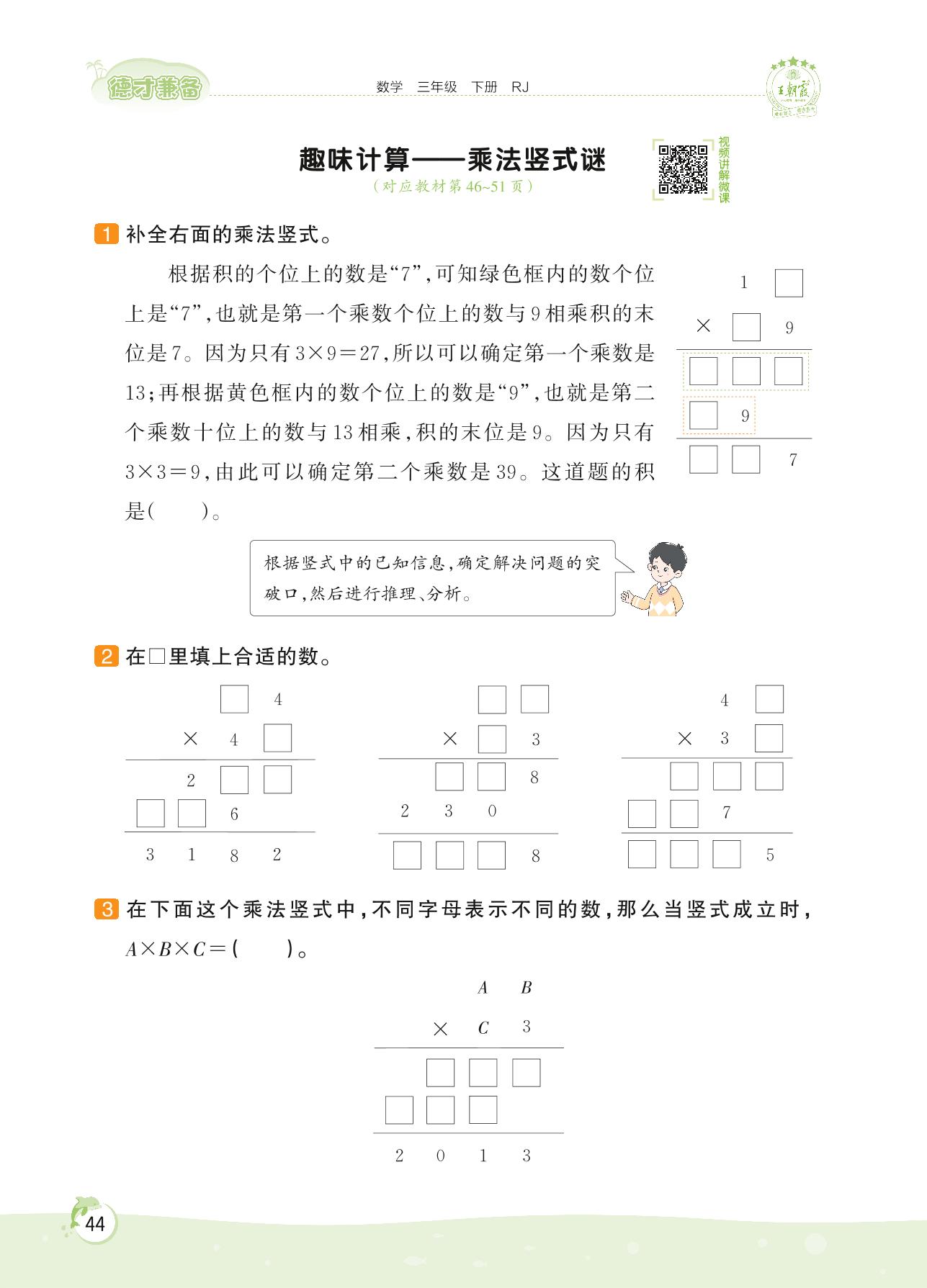 2022下册三年级数学人教版 第四单元 两位数乘两位数——趣味计算 乘法竖式谜
