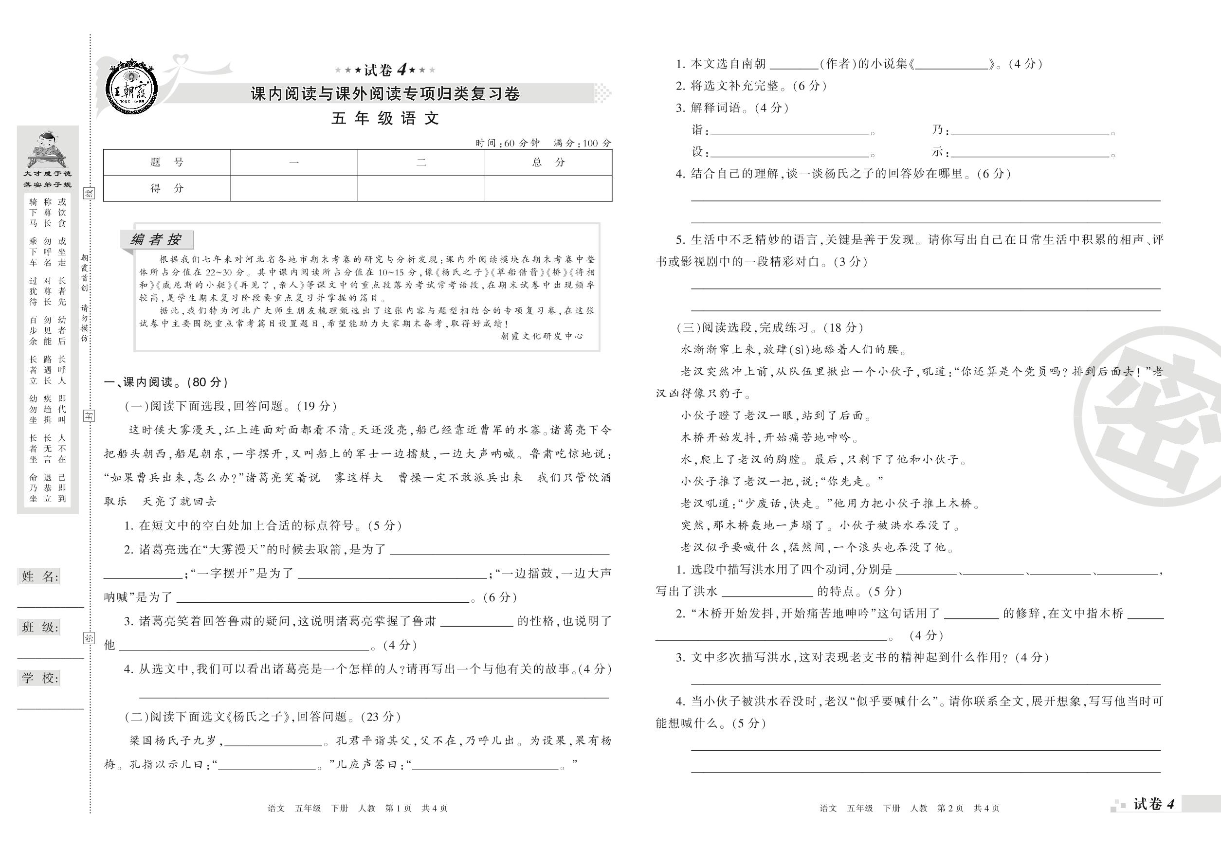 王朝霞期末专项卷——课内阅读与课外阅读专项归类复习卷五年级下册语文(人教版)_R210801231616【4】