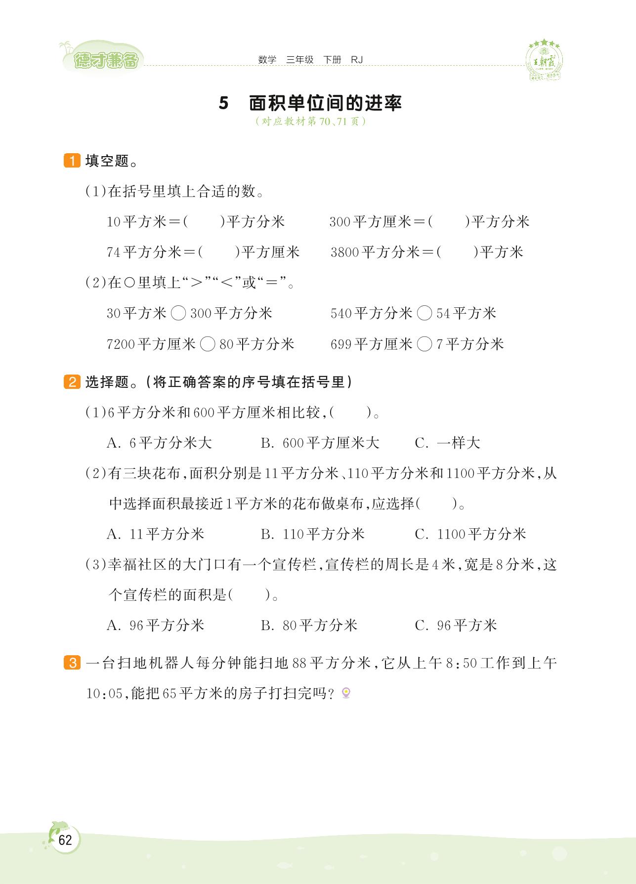 2022下册三年级数学人教版 第五单元 面积——5 面积单位间的进率