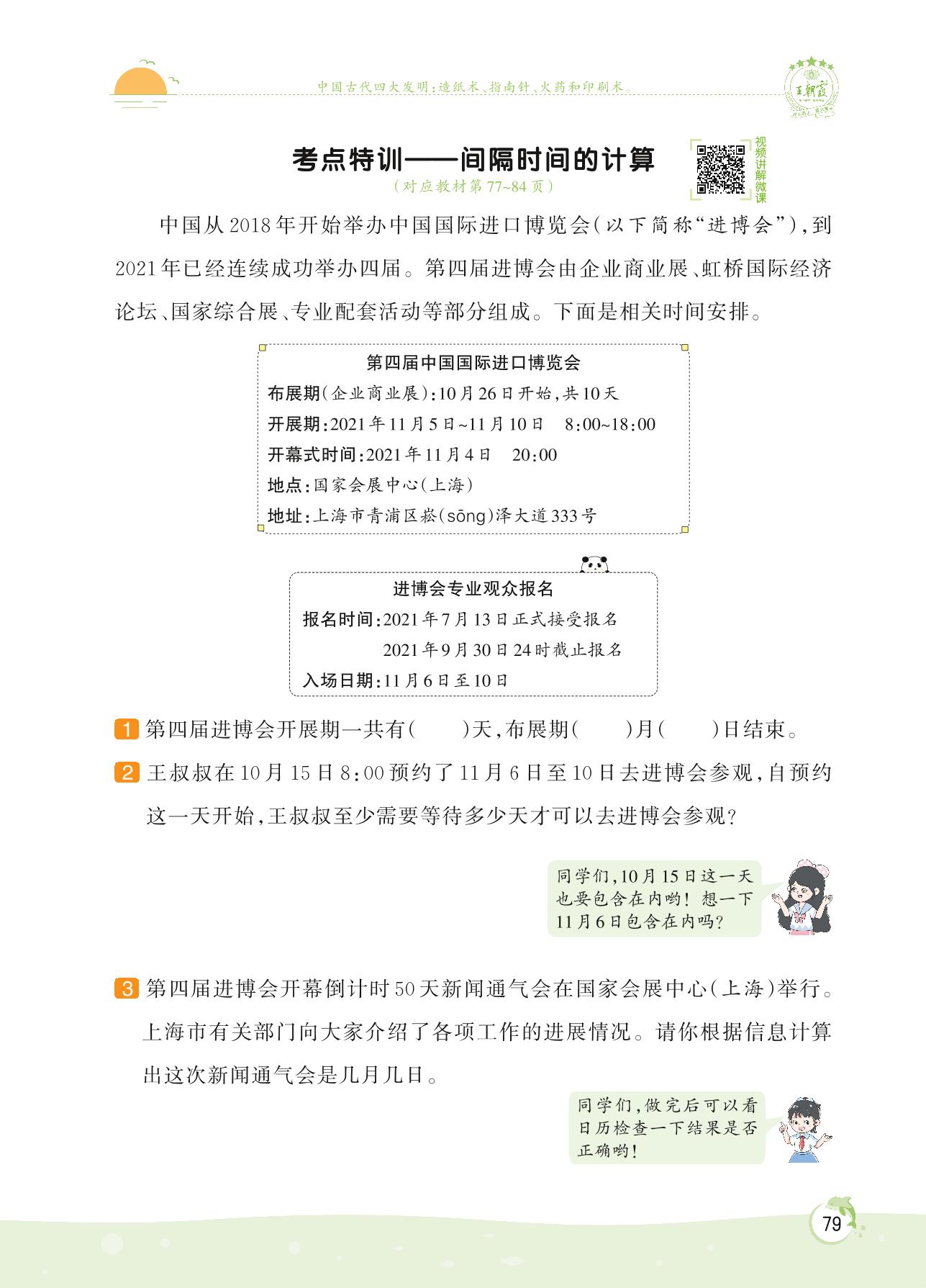 2022下册三年级数学人教版 第六单元 年、月、日——考点特训 间隔时间的计算