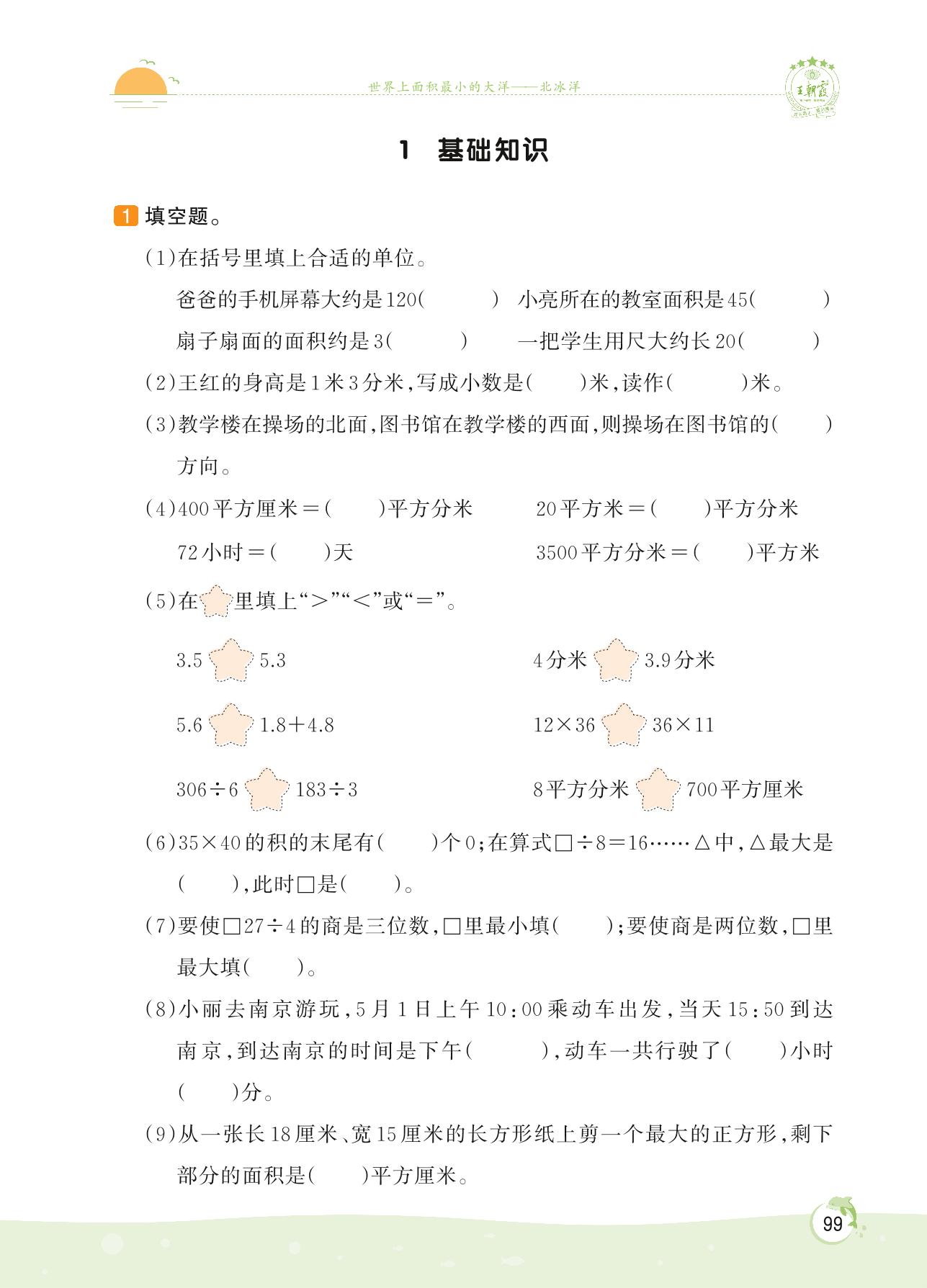 2022下册三年级数学人教版 第九单元 总复习——1 基础知识