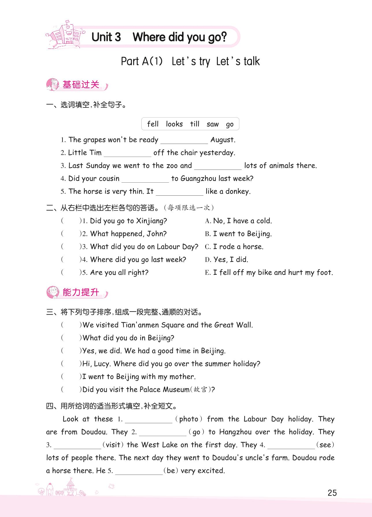 2022下册六年级英语人教PEP版 Unit 3—Part A(1) Let’s try Let’s talk