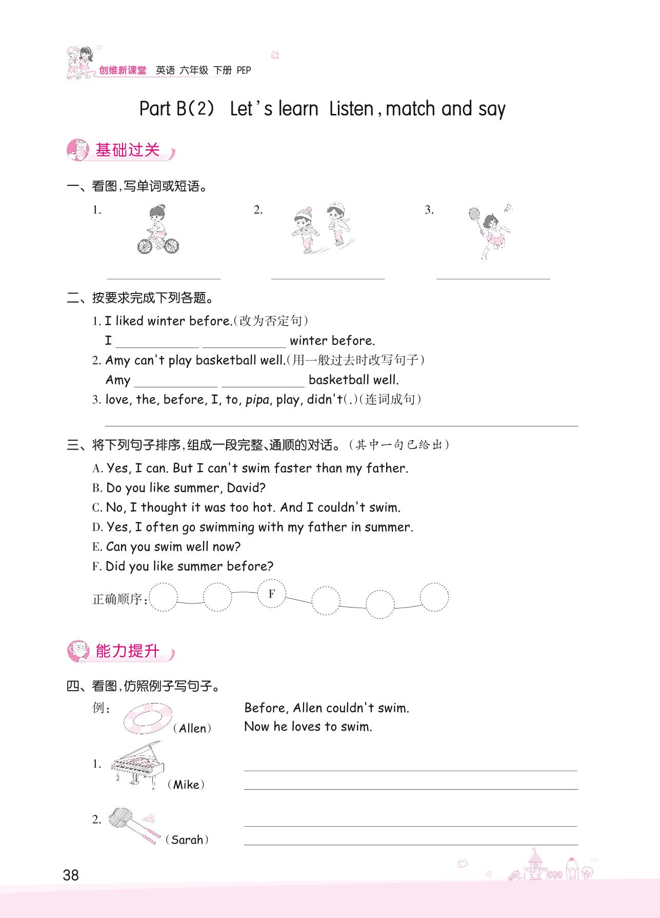 2022下册六年级英语人教PEP版 Unit 4—Part B(2) Let’s learn Listen,match and say