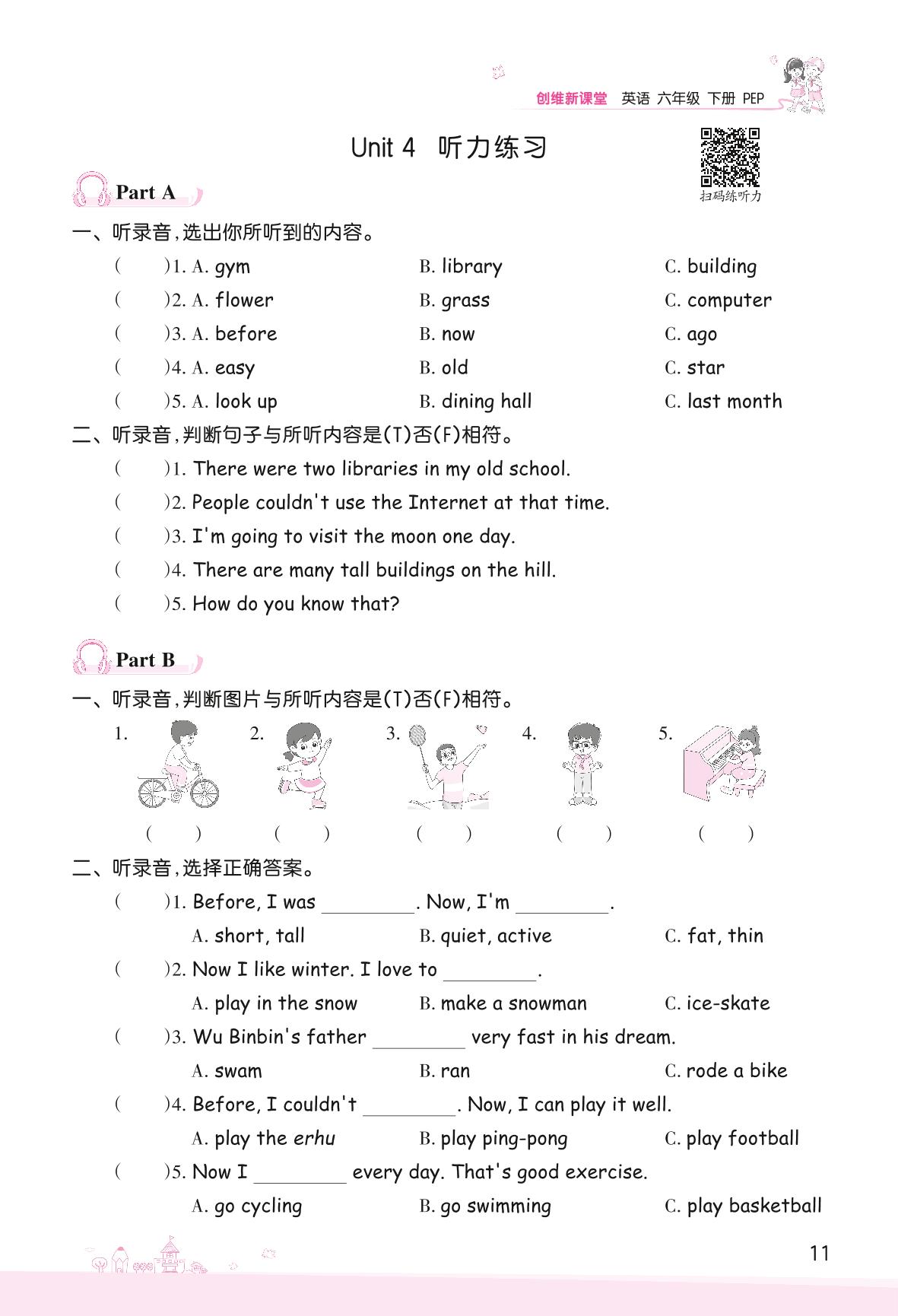 2022下册六年级英语人教PEP版 Unit 4 Then and now—Part A、Part B 听力练习