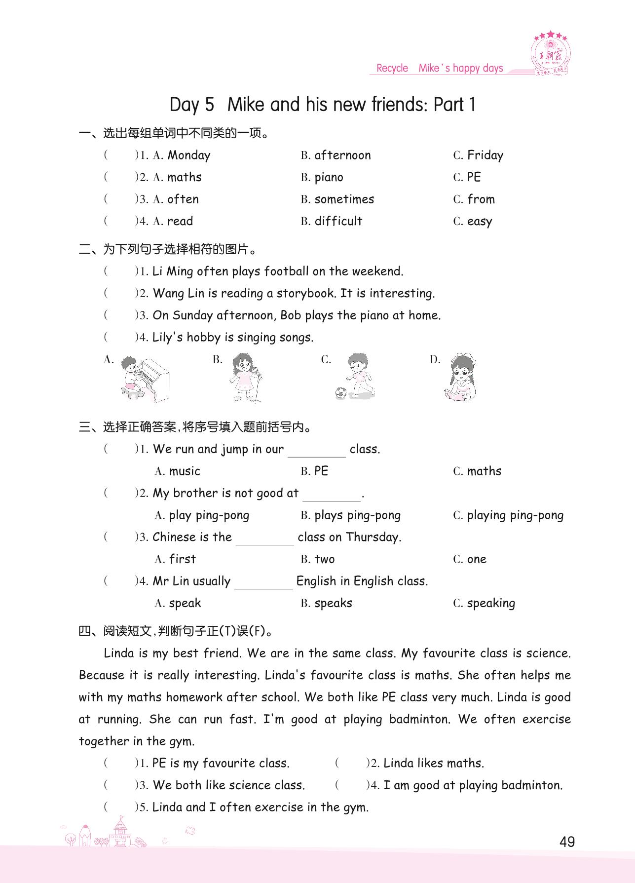 2022下册六年级英语人教PEP版 Recycle—Day 5 Mike and his new friends:Part 1