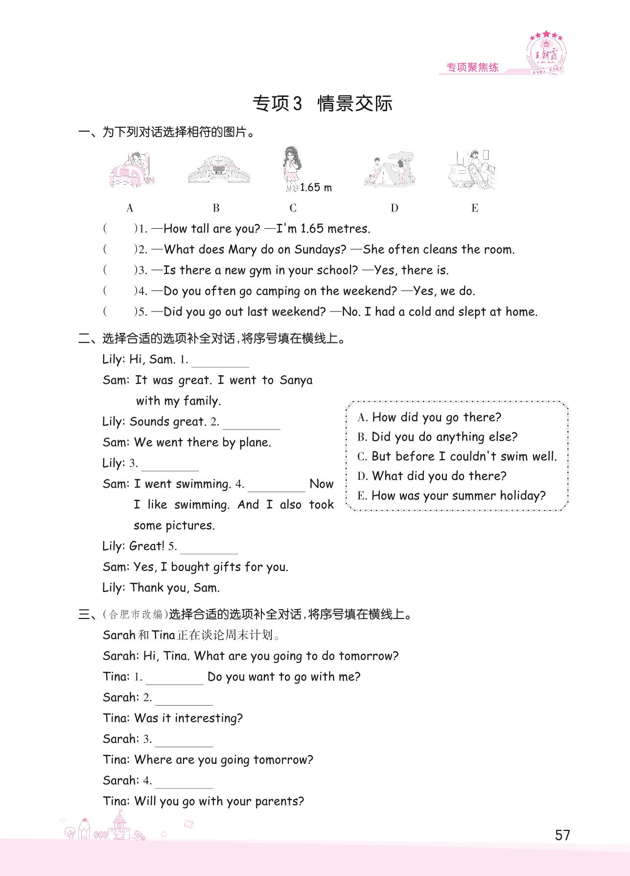 2022下册六年级英语人教PEP版 专项聚焦练—专项3 情景交际