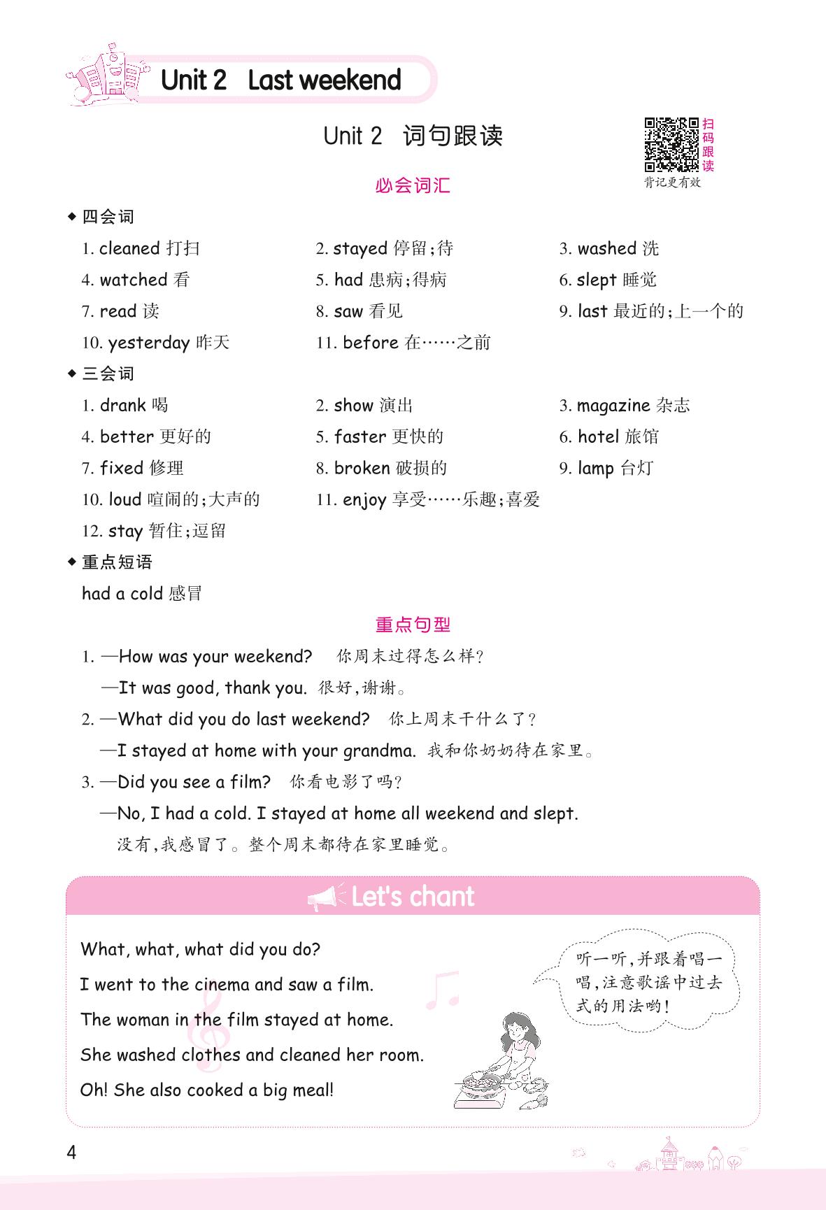 2022下册六年级英语人教PEP版 Unit 2 Last weekend—词句跟读