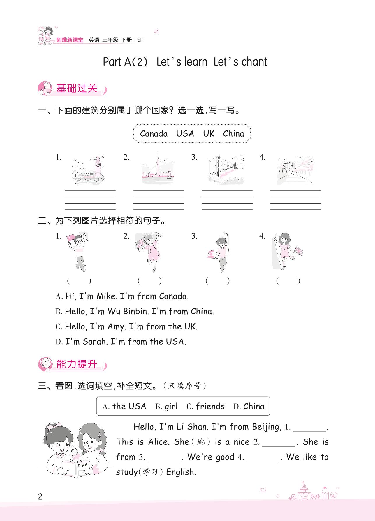 2022下册三年级英语人教PEP版 Unit 1—Part A(2) Let’s learn Let’s chant
