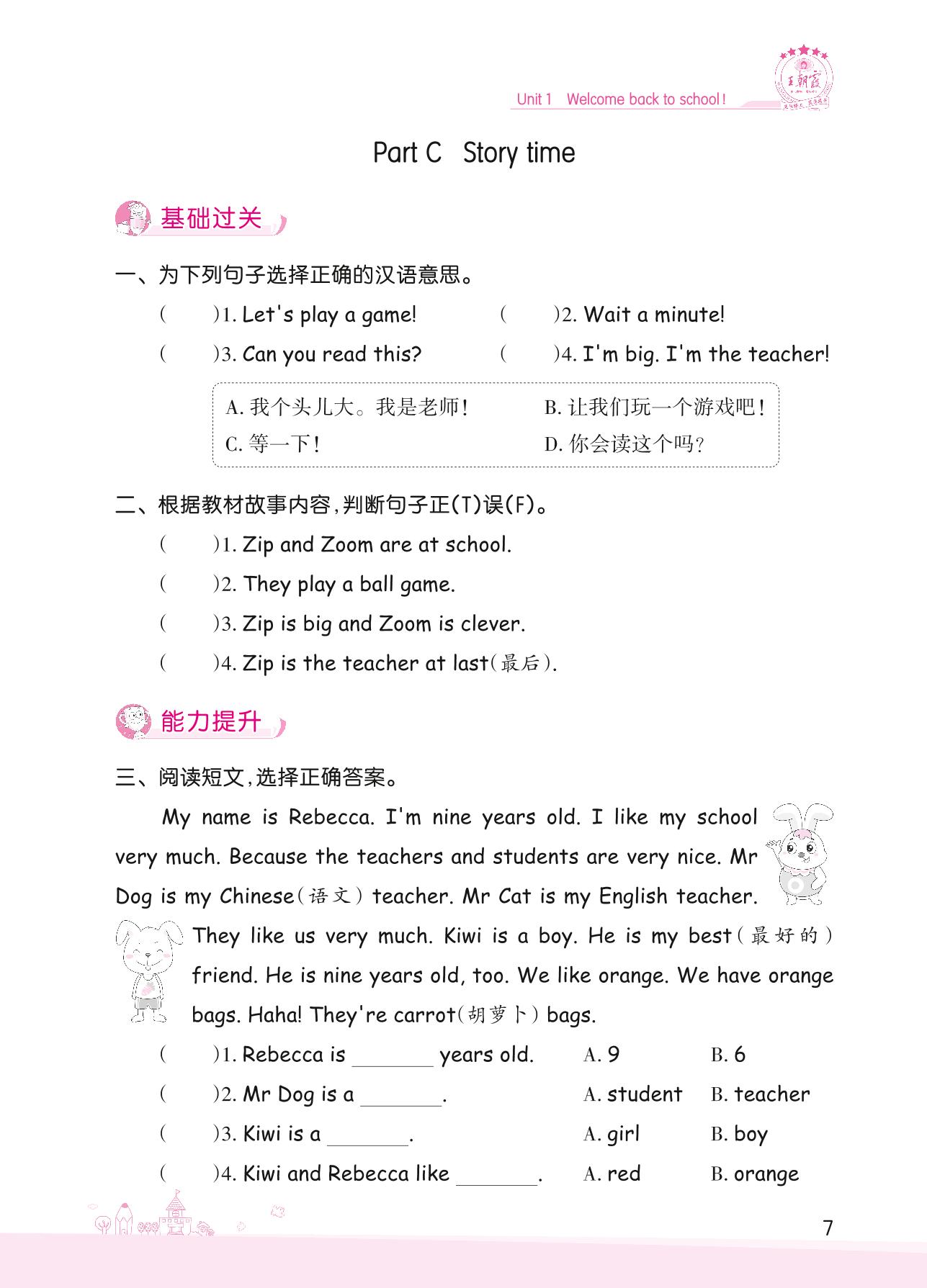 2022下册三年级英语人教PEP版 Unit 1—Part C Story time
