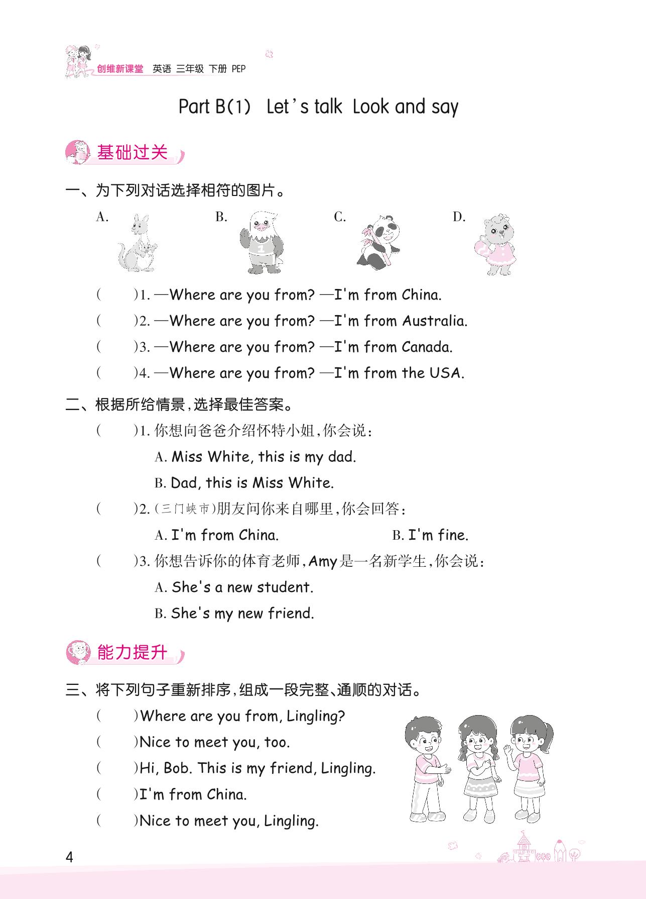 2022下册三年级英语人教PEP版 Unit 1—Part B(1) Let’s talk Look and say