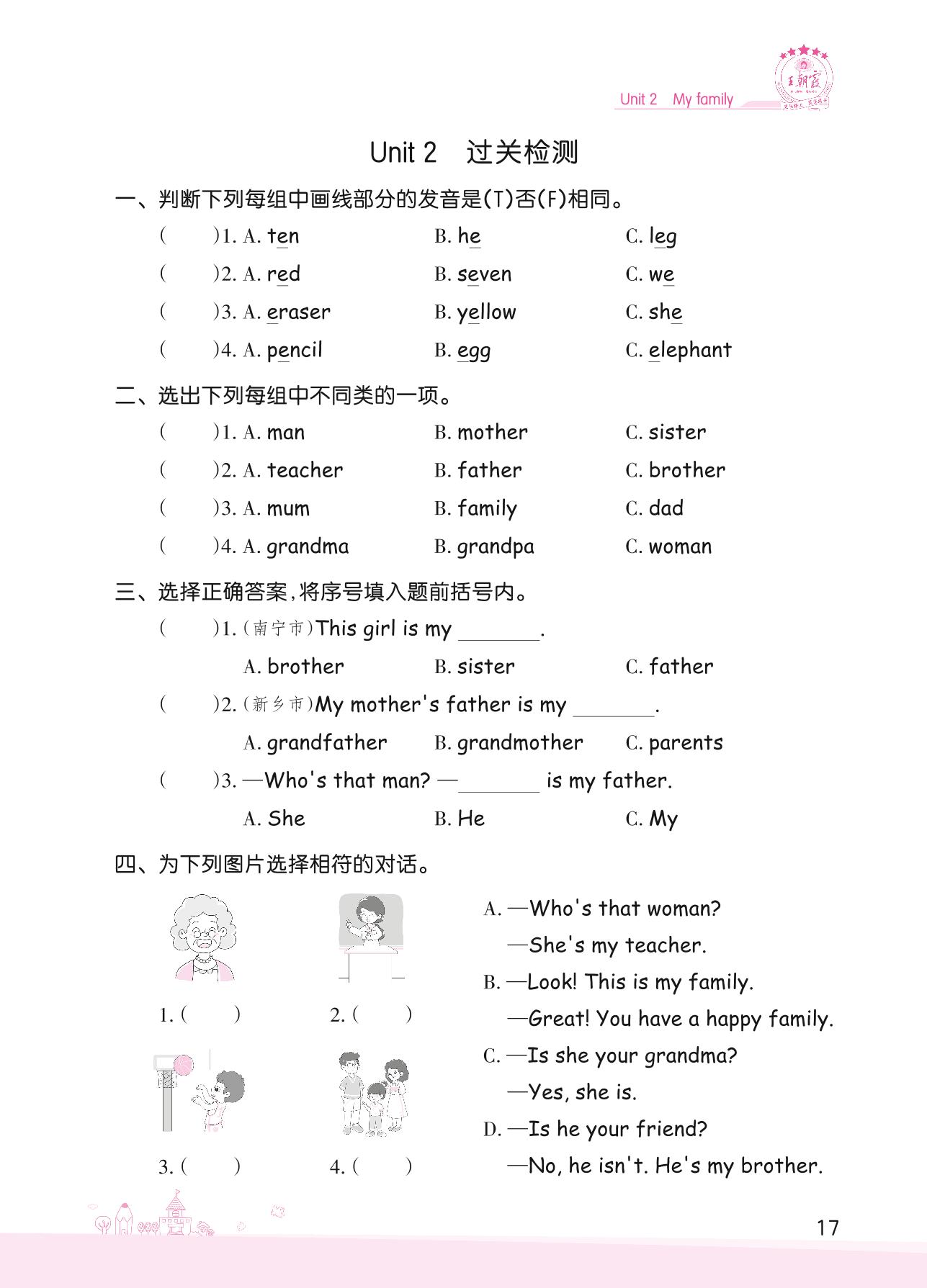 2022下册三年级英语人教PEP版 Unit 2 过关检测
