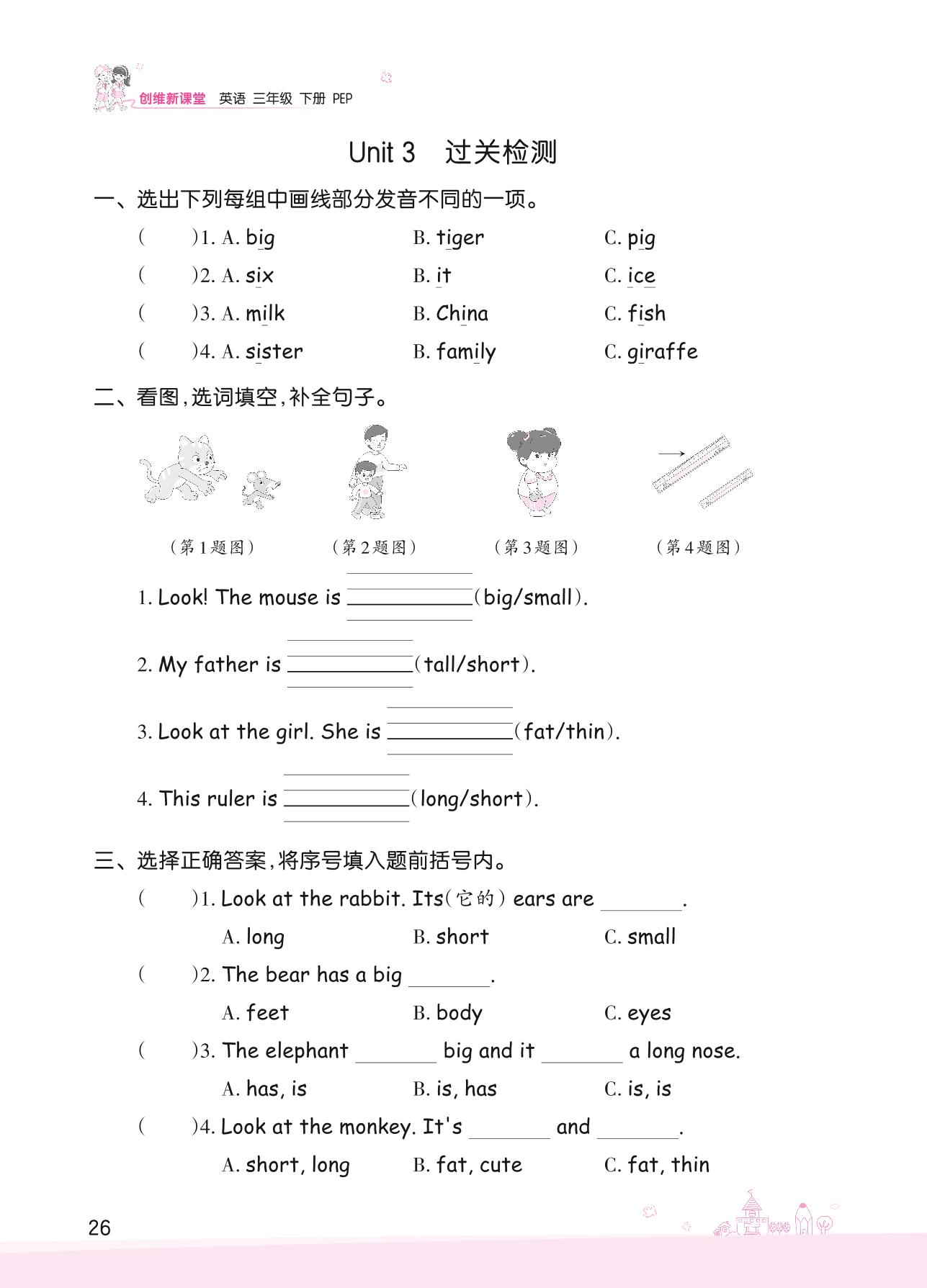 2022下册三年级英语人教PEP版 Unit 3 过关检测