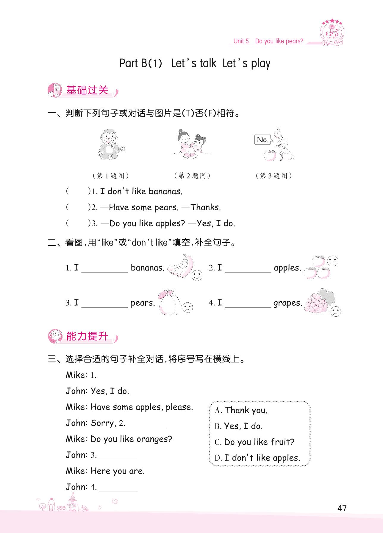 2022下册三年级英语人教PEP版 Unit 5—Part B(1) Let’s talk Let’s play