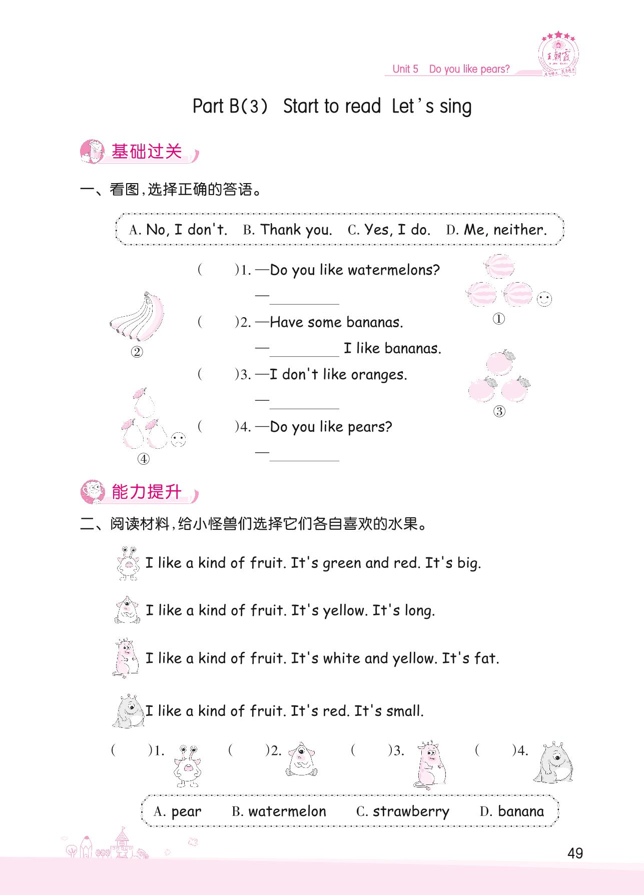 2022下册三年级英语人教PEP版 Unit 5—Part B(3) Start to read Let’s sing
