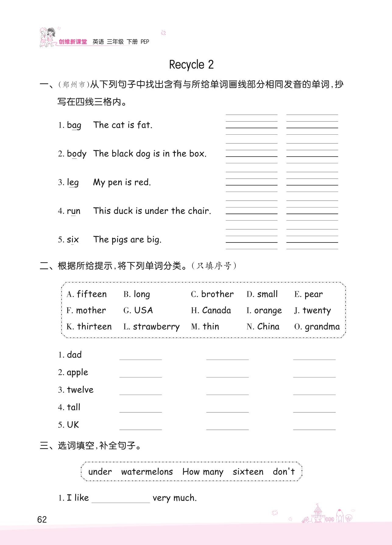 2022下册三年级英语人教PEP版 Recycle 2_R220222090505435
