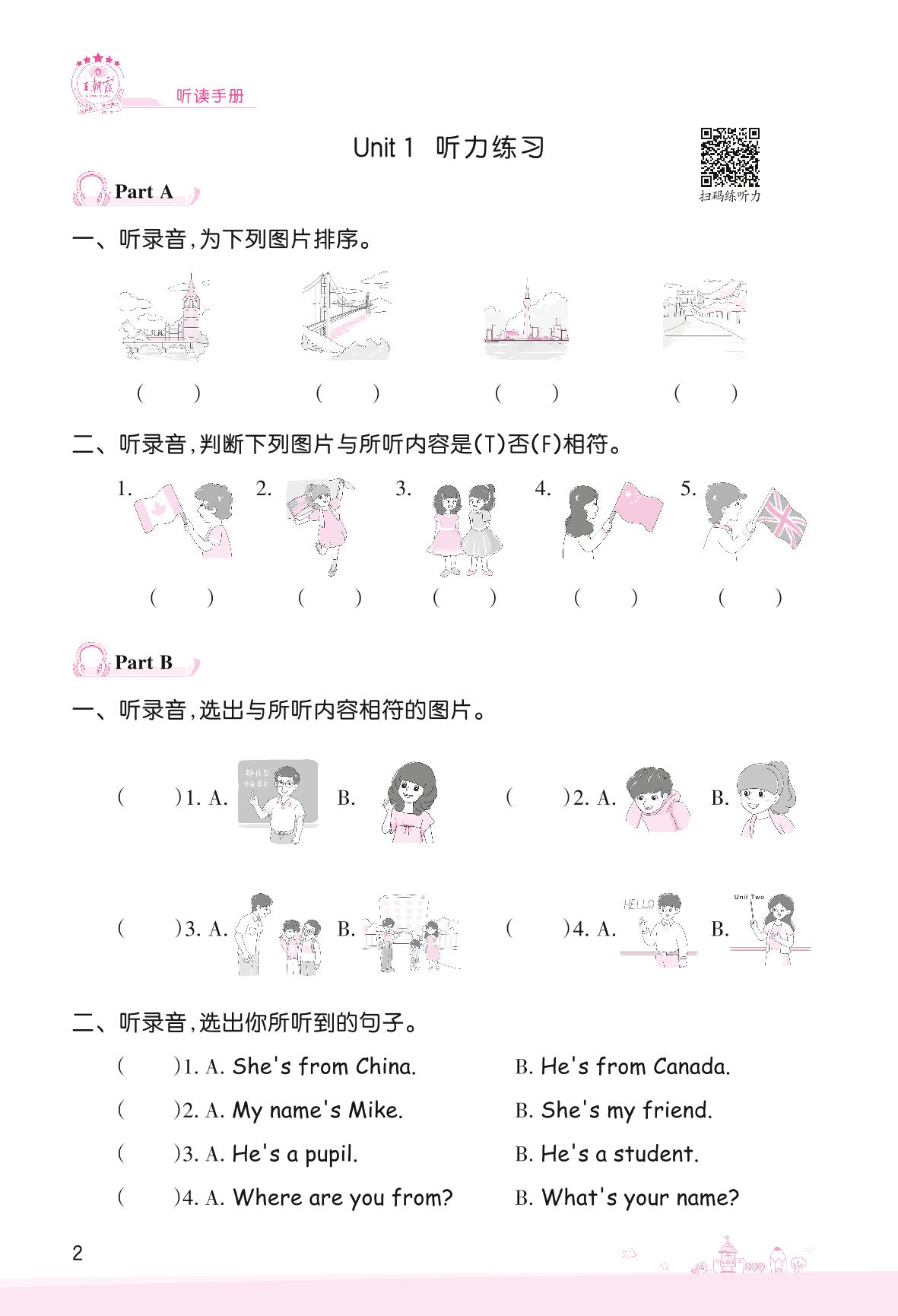 2022下册三年级英语人教PEP版 Unit 1 Welcome back to school!—Part A、Part B 听力练习