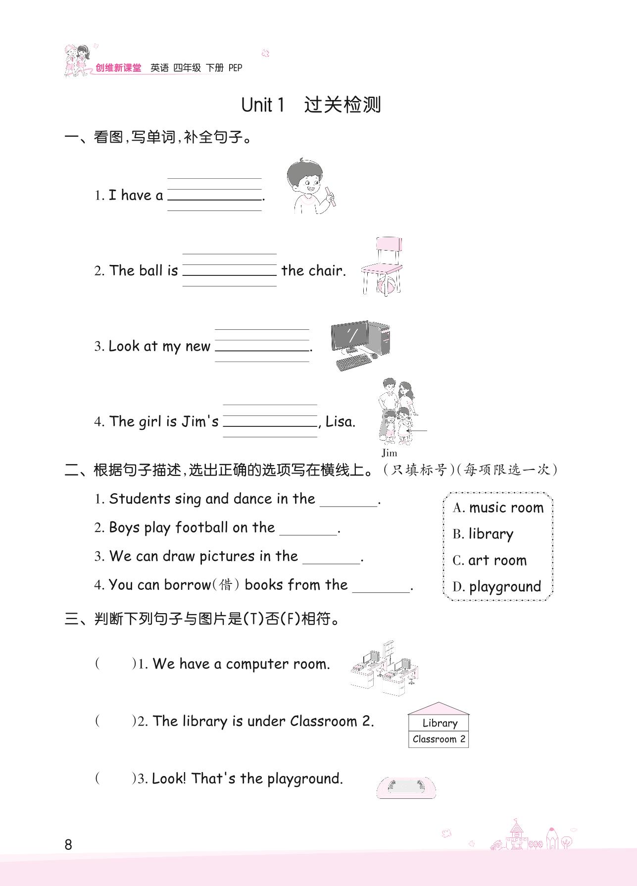 2022下册四年级英语人教PEP版 Unit 1 过关检测