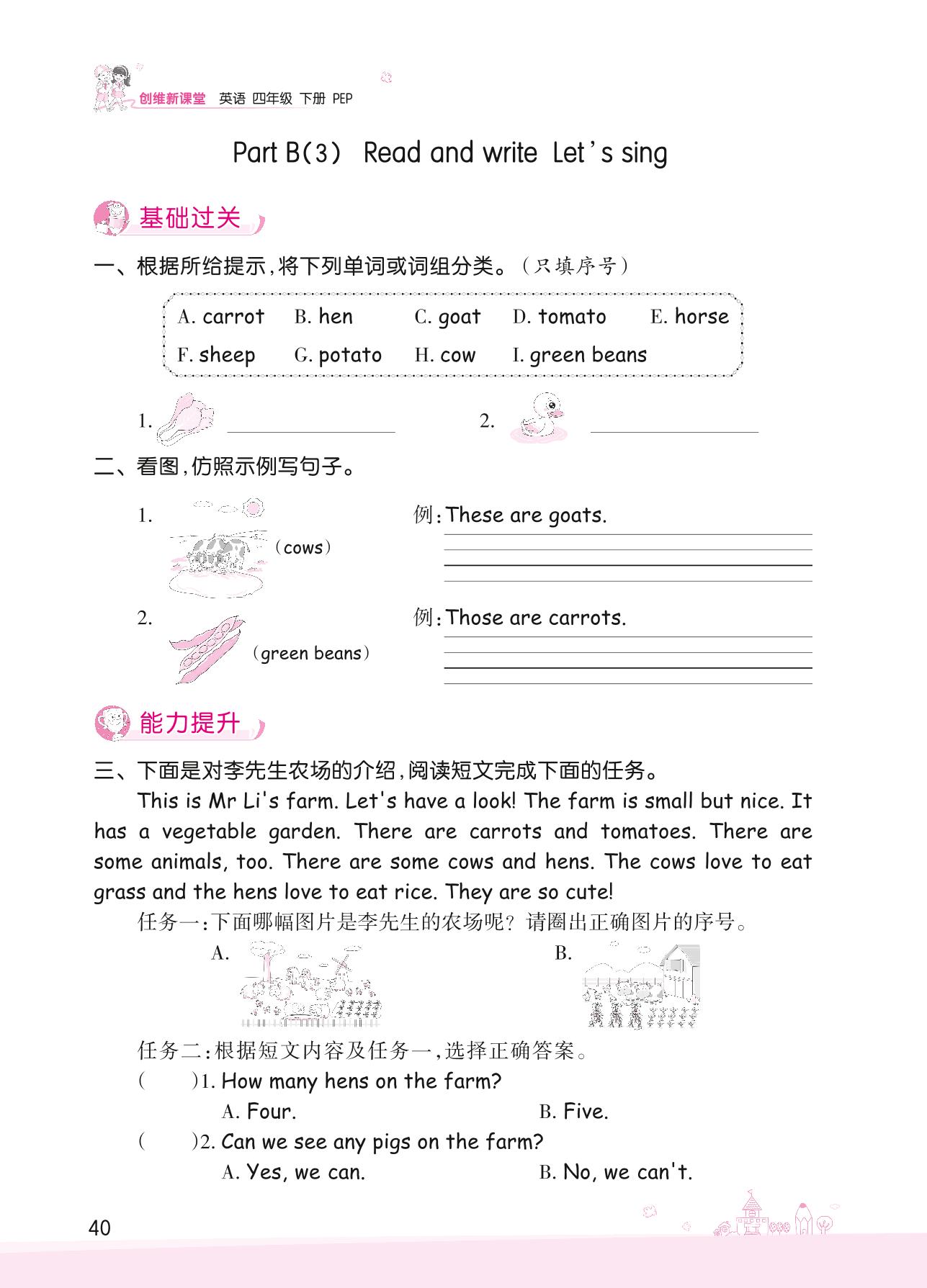 2022下册四年级英语人教PEP版 Unit 4—Part B(3) Read and write Let’s sing