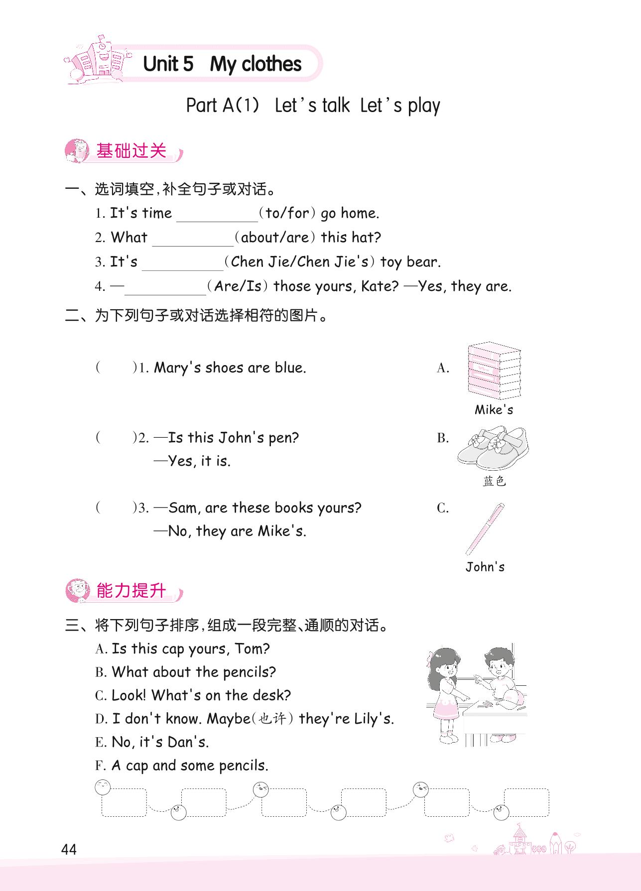 2022下册四年级英语人教PEP版 Unit 5—Part A(1) Let’s talk Let’s play