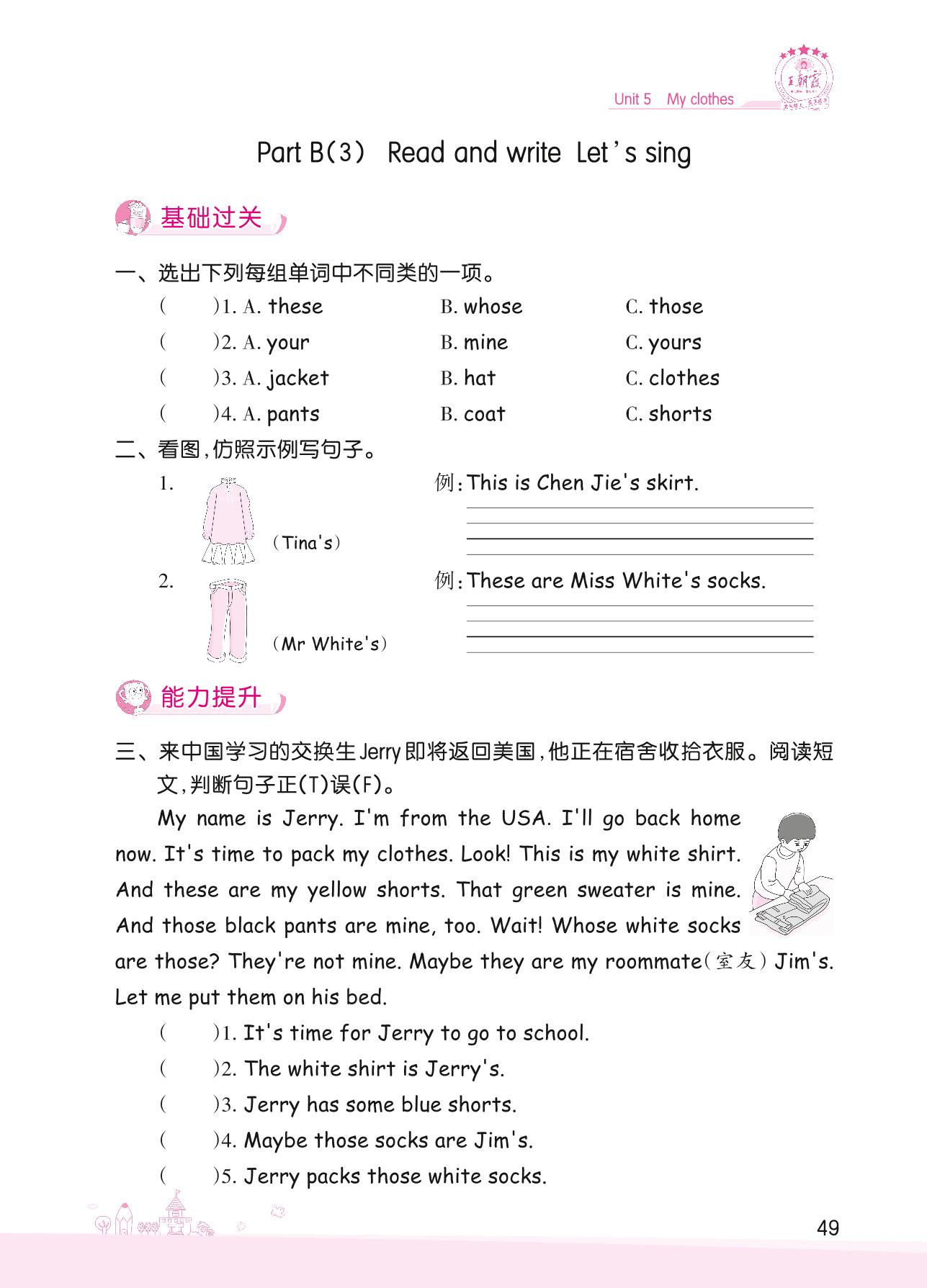 2022下册四年级英语人教PEP版 Unit 5—Part B(3) Read and write Let’s sing