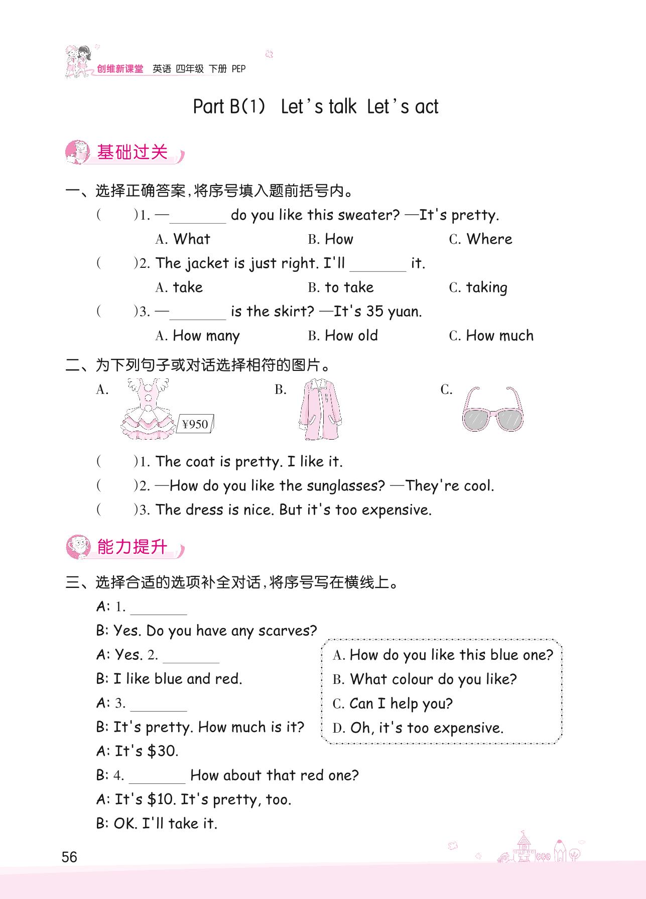 2022下册四年级英语人教PEP版 Unit 6—Part B(1) Let’s talk Let’s act