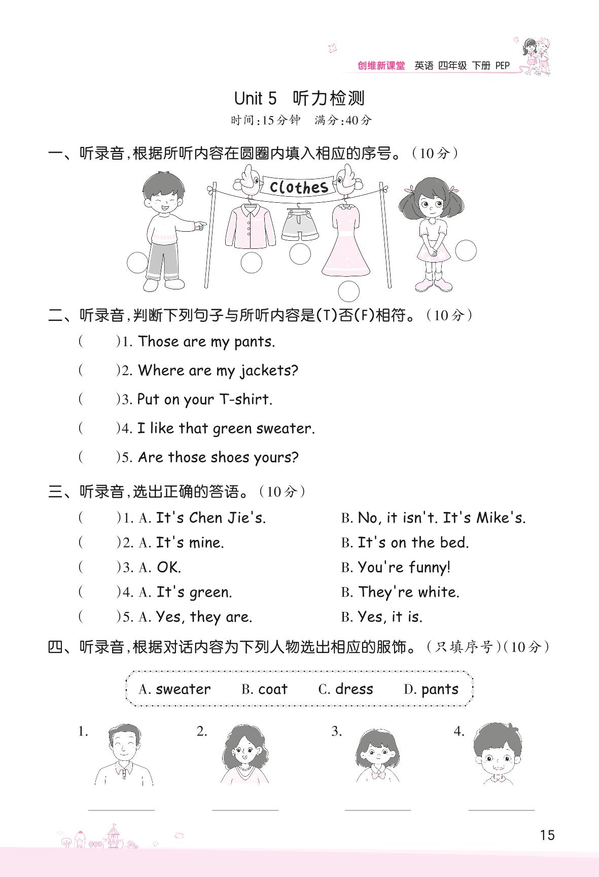 2022下册四年级英语人教PEP版 Unit 5 My clothes—听力检测